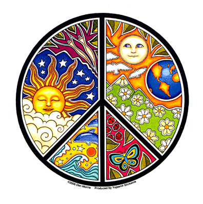 OK, kidding about the heart. And no “tramp stamps” either, while we’re at it! But I do think my gravatar – the iconic little peace symbol that has followed me around my blog for a long time now – would make for a pretty cool tattoo. It stands for much that I believe in: peace and the planet earth and the fact that the sun rises every morning. I’m sort of a hippie at heart, if not in practice (I enjoy bathing too much). I’m anti-war, pro-environment, occasionally wear tie-dye, own the Woodstock album on vinyl, and lust after a VW Bus. I’ve been burned by marriage, so free love is looking better and better. Plus, I enjoy the occasional granola bar. Peace symbols have always been my “thing.” Fun fact: did you know that the peace sign is derived from the semaphore (hand-held flag) signals for the letters N and D and stands for Nuclear Disarmament? The fact is, I think this image is perfect. The only problem is, it’s awfully darned intricate, which means A) it’ll probably cost a lot of money, and B) it’ll probably hurt like a bitch.