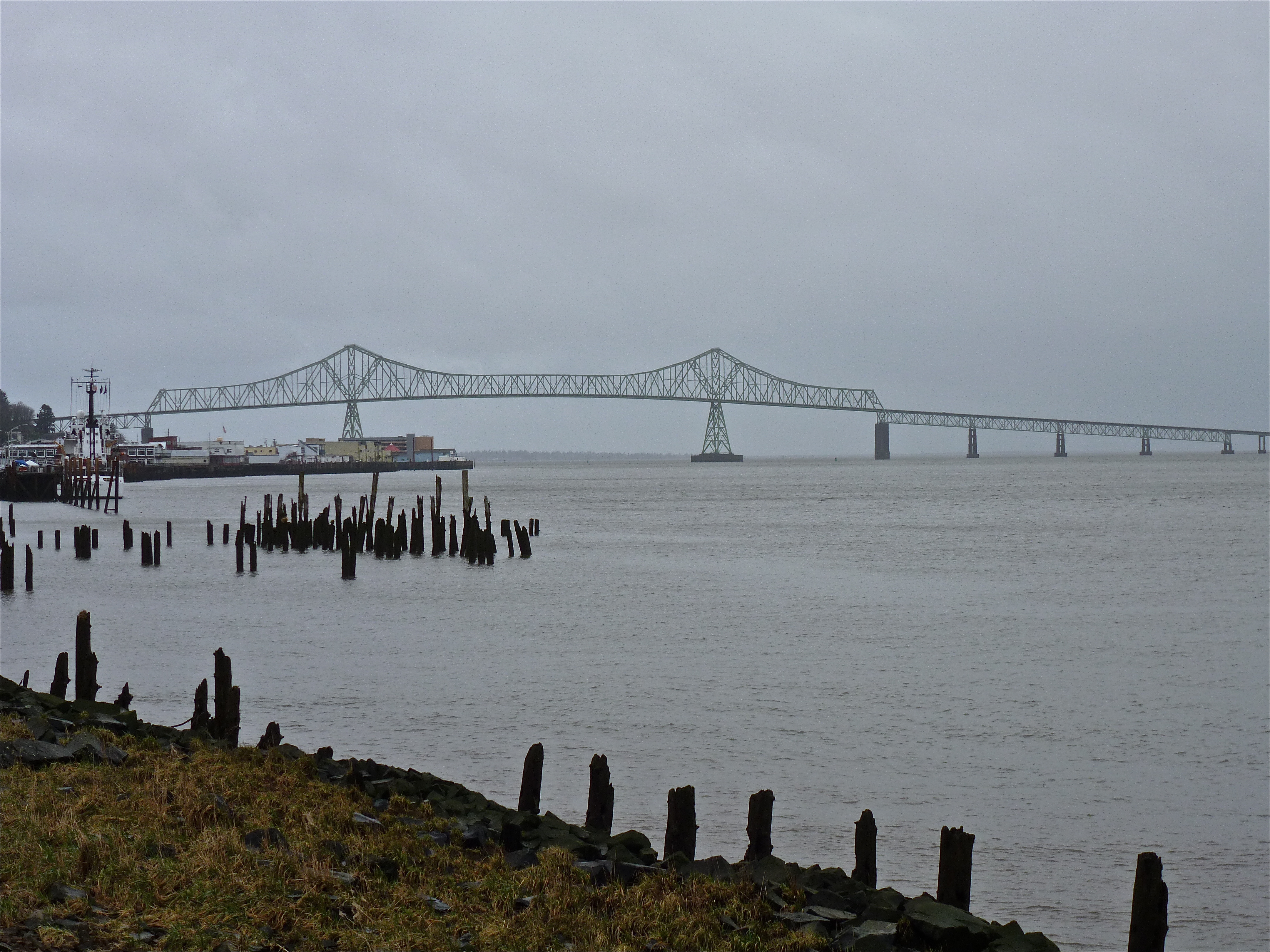And okay, fine, there was more than just the clam chowder at the end of my destination. There was sand and surf and salt air. The ocean. Fun shops to browse through. And the world’s largest frying pan. I’d been longing to take a trip to Long Beach, Washington for some time now – and with a kid-free Saturday looming large, decent weather (meaning overcast and drizzly), and an iPod full of tunes, the open road beckoned this past weekend. I decided to hit the road at 9 AM sharp. I stopped in Astoria a couple of hours later to walk along the Columbia River for a bit, before proceeding across the 3.5-mile long bridge that connects Oregon and Washington. I arrived in Long Beach about 11:30.