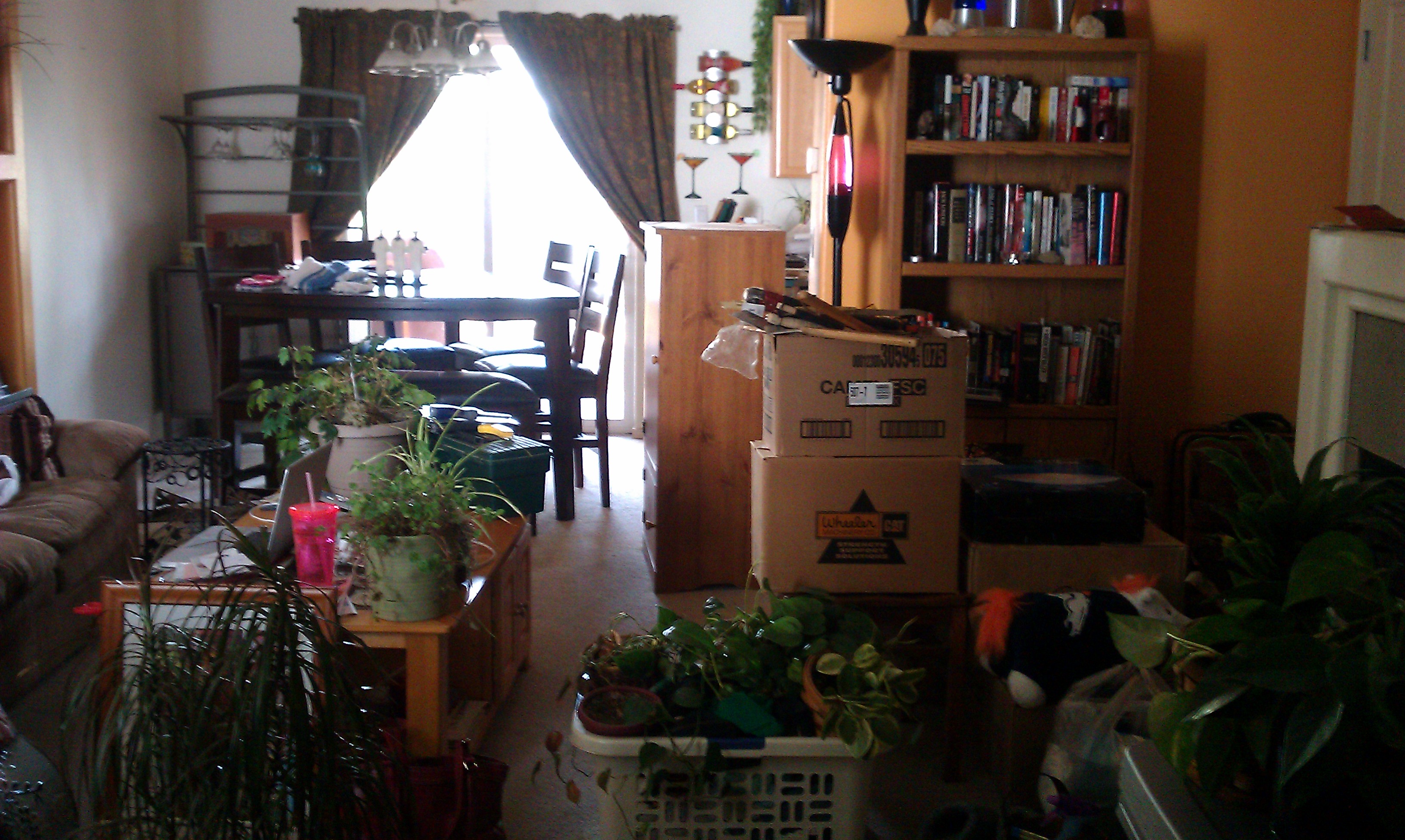 Her dad was right behind, pulling a trailer filled with all her worldly possessions. When I saw the trailer, I breathed a sigh of relief. It was smaller than I’d expected – only about 10′ long, shorter than a U-Haul. My relief was short-lived, however; when he opened the lift gate, I saw what a fantastic job he had done of packing the thing. It was crammed, floor to ceiling, with boxes and boxes (and more boxes). And furniture. And other items.