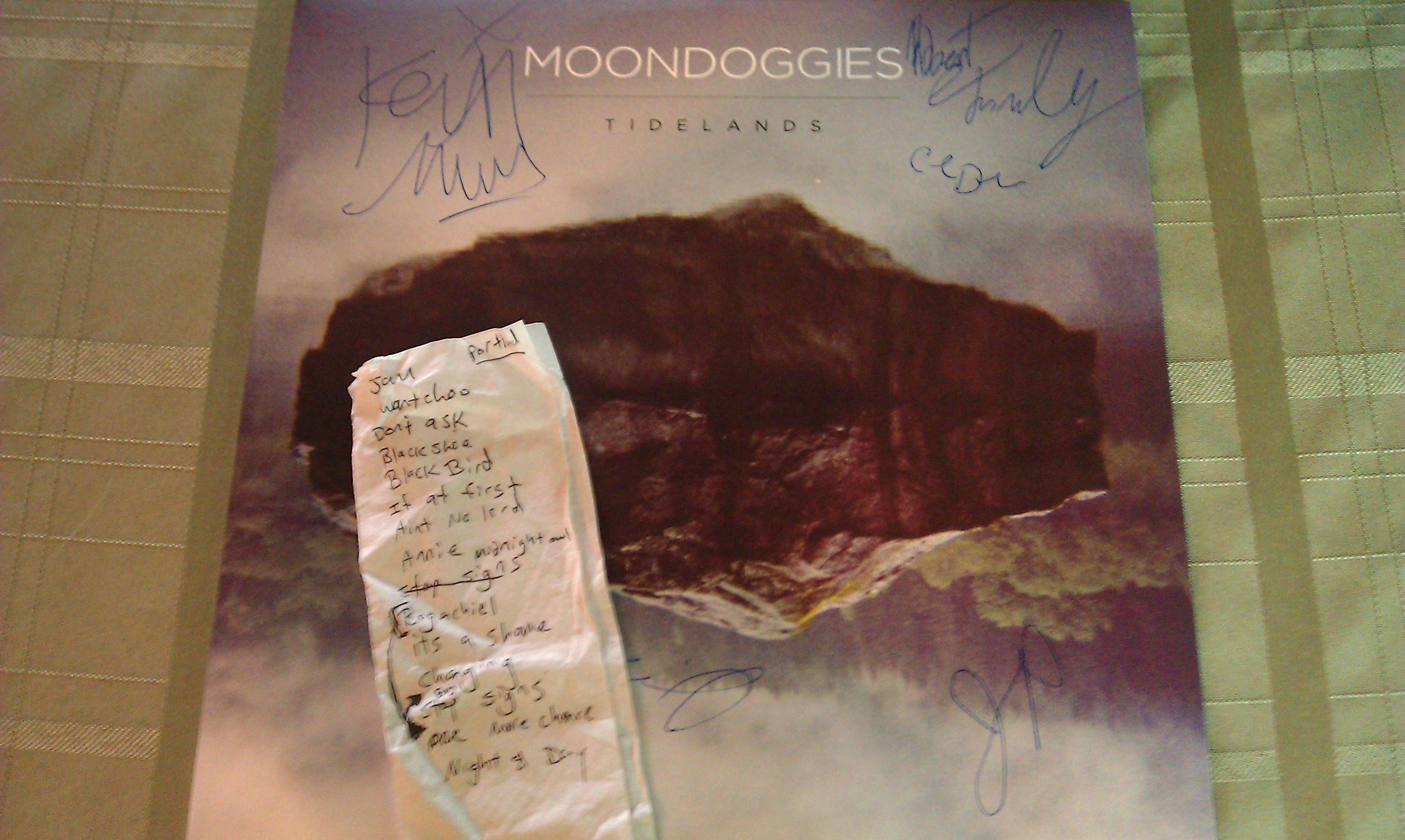 Actually, it is. (Warning: I’m about to geek out here). Not only did Tara surprise me with a vinyl LP she bought at the show, but she had all the band members sign it for me. And I grabbed their handwritten set list from the stage after the show. Scribbled on a napkin. How cool is that?! I’m such a fanboy – who knew? Granted, almost nobody has even heard of The Moondoggies. They’re a local indie rock band from Everett, Washington. But if they ever explode and become really popular, man will I have some cool stuff. It could happen – you never know. Once upon a time, Nirvana played tiny clubs in front of a dozen people, so anything is possible.