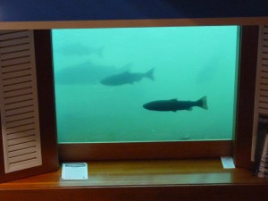 Saturday morning, we loaded up the car and headed east, stopping by Bonneville Dam on the way to check out the poor, delusional salmon that were swimming upstream in order to die. I doubt they realize this on the way. Otherwise, would they really go to all the trouble of swimming against the current and traversing obstacles like giant concrete dams with turbulent spillways and scary whirring turbines that block the river? I mean sure, there’s a nice little payoff when they reach their destination, but then that’s it. Wham, bam, thank you, ma’am. Fish are not the brightest of creatures.*