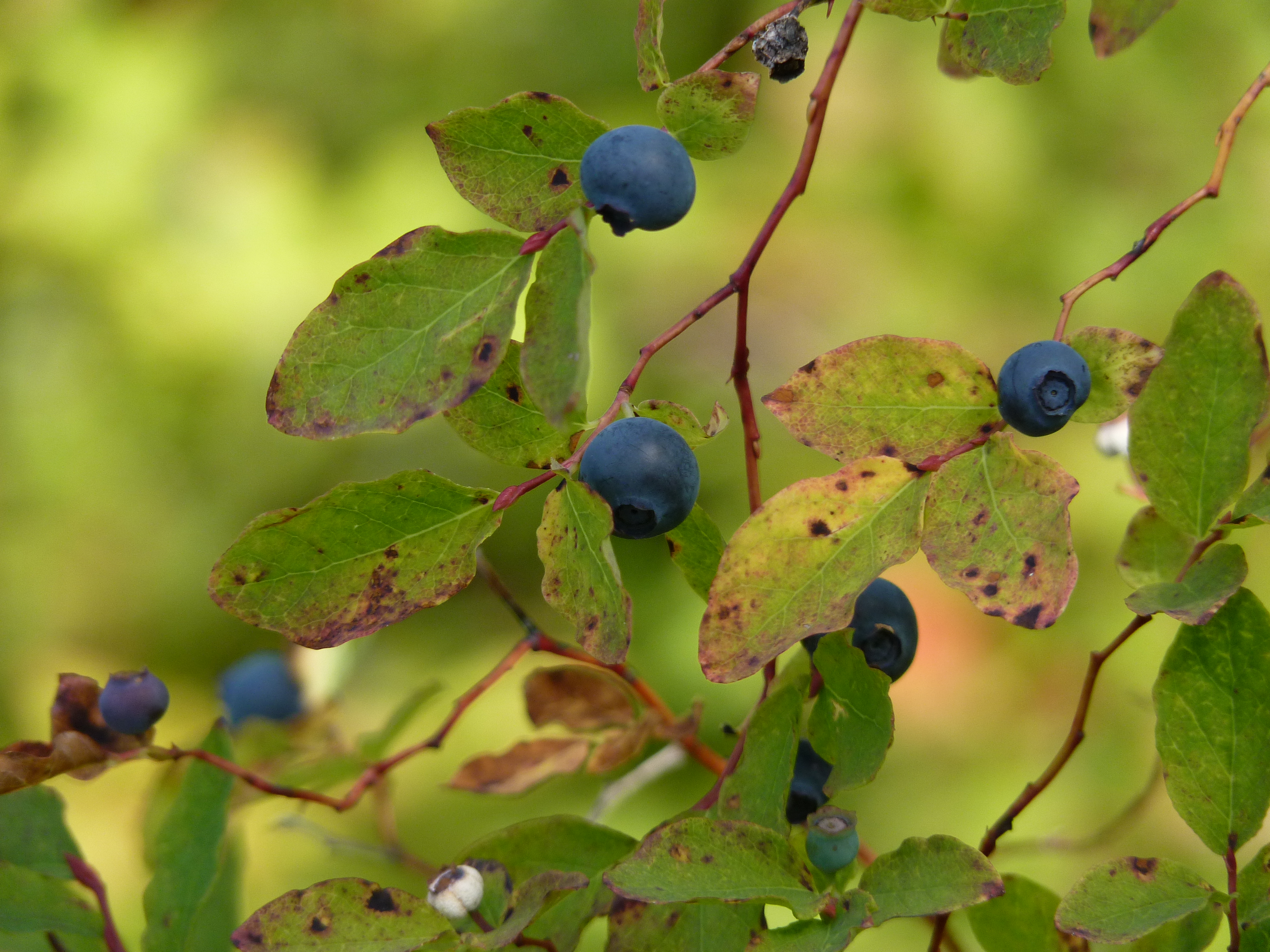 After our dam detour (in which we had a dam good time without paying a dam cent) (“dam it,” you’re probably thinking, enough with the dam jokes already!) we migrated upstream ourselves, passing through Stevenson and Carson and Panther Creek before reaching our destination, the lovely and remote Indian Heaven Wilderness. Once there, we spent a couple of hours picking huckleberries, filling our bags full of the luscious, sweet fruit. Huckleberries are like tiny blueberries, only a lot more flavorful. They make excellent jam, syrup, muffins, etc. We had a perfect day for doing this: sunshine, a few feathery clouds drifting across the sky, and a gentle breeze that carried upon it the faintest trace of autumn.