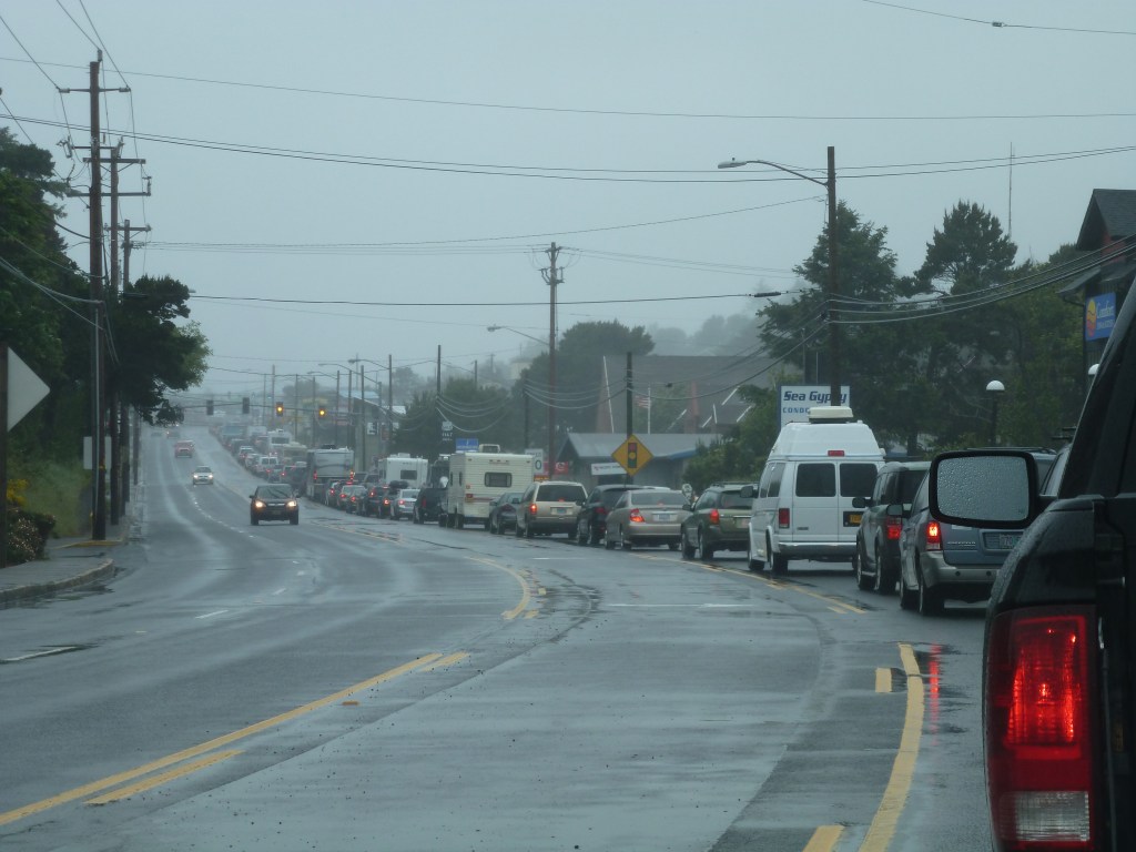It was time to head home then, so head home we did. With about 10,000 other people who’d decided to take advantage of the holiday weekend by spending it on the Oregon coast. We crawled along the single-lane highway out of town as traffic inched ahead maddeningly slowly. It never really broke up until we were 1/3 of the way home, either. But eventually we did get home, back to reality. Just in time for a massive downpour with thunder and lightning. We spent the rest of the evening kicking back, watching TV.