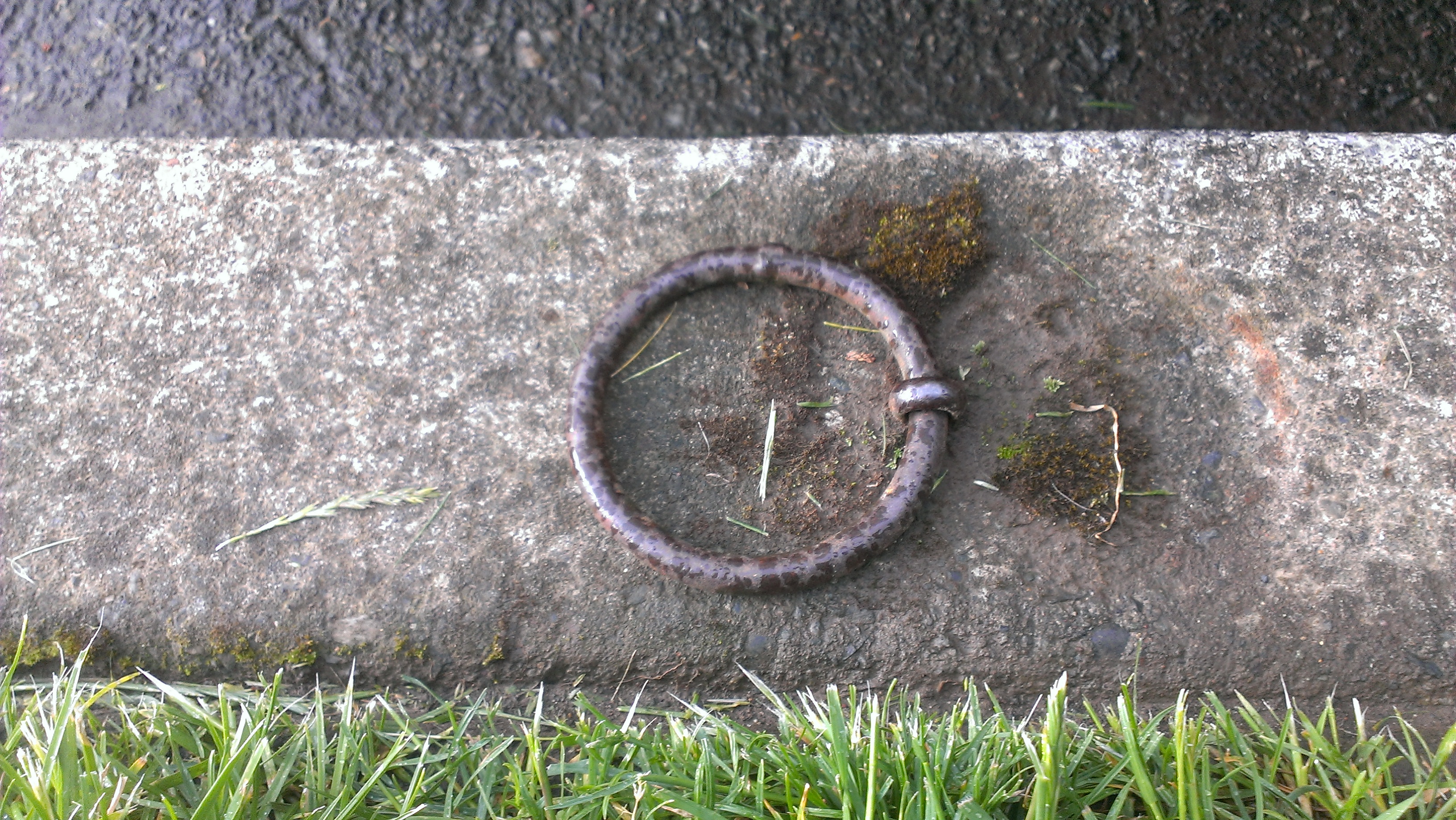 Those are hitching rings, solid posts embedded in concrete and installed shortly after the turn of the century. People tied their horses to those rings, and in true Portland style, people still tie horses to them – only they’re usually tiny and stuffed. These things are scattered all over the city, and offer a great glimpse into the past. How cool is that?
