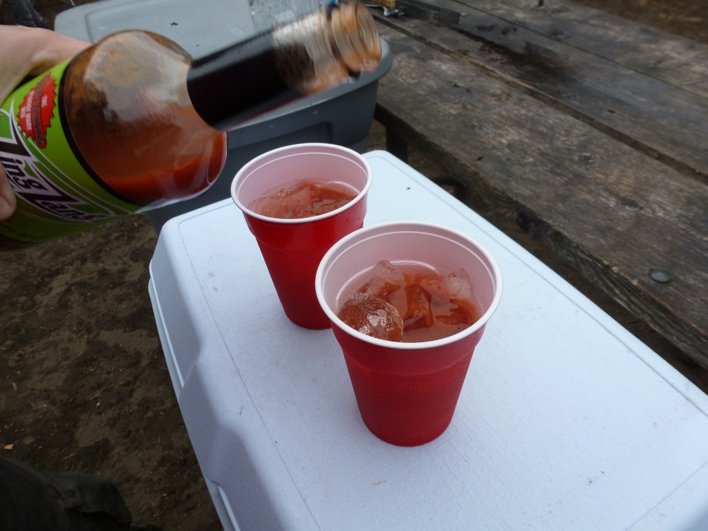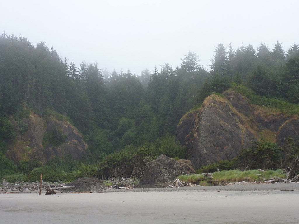 We ended up eating dinner around 10:30. I’d learned how to make “hobo packs” from scouting Pinterest; these were foil packets containing ground beef, sliced red potatoes, Walla Walla onions, mushrooms, and carrots, and seasoned liberally. You just cook them on hot coals for about half an hour, and they turn out tasting like miniature meatloaves. We all enjoyed those very much. It was after midnight before we crawled into bed, and the next morning we awoke to low clouds, fog, and mist. Unfortunately we never did see the sun, but it also never rained torrentially, so we couldn’t really complain. We walked along the beach, examined some tide pools, found a good sized Dungeness crab that we debated taking back to camp to cook, but ended up setting free. Only because Tara had all the ingredients for breakfast burritos, which turned out amazing. Those and bloody marys and we were really enjoying breakfast. The rest of the day was spent lounging around camp, exploring the beach and a nearby jetty, and lounging around camp. Oh, and also, we lounged around camp. Note: “lounging around camp” = “sitting on our asses drinking.”