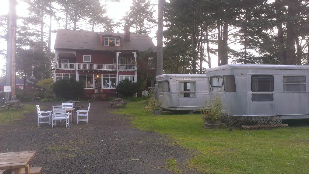 After killing time in Astoria, we crossed the bridge into Washington, and arrived at the Sou’wester Lodge around 8:30. Some articles refer to the place as a “spiritual convergence zone,” and I’d say that’s not far off the mark. It felt like we had stepped back in time; the rustic lodge (built in 1892) with its brightly colored string of lights overlooked a group of vintage trailers plucked straight out of the 50s, all tucked between a stand of towering fir trees within walking distance of the ocean. The proprietor was an older woman who was clearly an ex-hippie. She showed us around the lodge and then walked us over to our trailer, a 1953 Zelmar cruiser. The trailer was well-maintained and right up my alley, with polished wood and kitschy curtains throughout. It included a cozy bedroom, a table with bench seating, sink, stove, microwave, refrigerator (more like a classic icebox), and a living room with a low-slung couch. We even had a 13″ color TV/VCR combo and a library of VHS tapes to borrow for free. Very cool. We kicked back with some adult beverages and then walked over to a dive bar next door called Rod’s Lamplighter, where we had some more drinks, played pool, listened to karaoke, and chatted with the locals. Everybody was friendly, and the tater tots were delicious. We didn’t get back to the trailer until close to 1 AM, and didn’t get to bed for almost an hour.