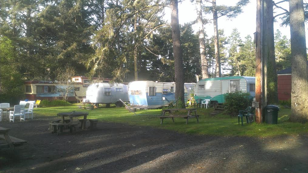 While pop-up campers were representative of my childhood, I’ve always had a fondness for vintage travel trailers from the 1950s. No surprise, given my love of all things retro. Think shiny silver Airstreams that looked very Space-Agey back then, or my ultimate dream machine, a Volkswagen Camper Bus. So when a friend of ours told us about a place on the Washington coast where you can stay in fully appointed vintage trailers, we knew we had to check it out. This past weekend gave us the perfect excuse: it was both my birthday and the Astoria Crab, Seafood & Wine Festival. We made reservations a couple of months ago, and set out Friday afternoon after work.