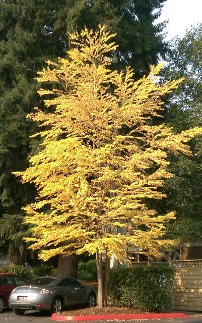 I really wish it would clear up, though. It’s weird to walk outside and have it smell like a campfire everywhere you go. The wind is supposed to shift back this evening and blow the smoke back east, away from us. Can’t wait. I swear, this has been the worst summer in ages. So hot and dry. And yet, there are signs of change in the air. Like this tree in our apartment complex.