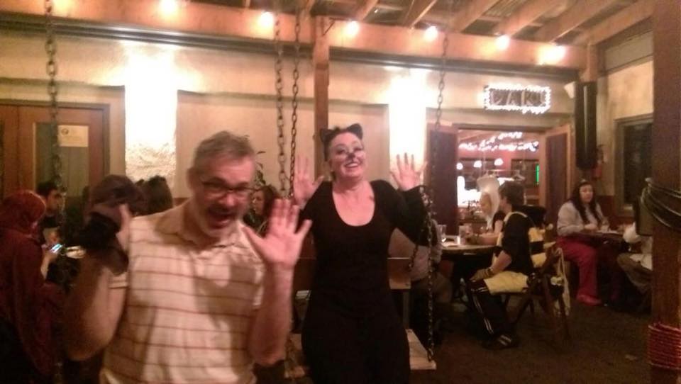 Major bummer, but not really a surprise given the fact that it had been raining hard for a few hours by that point and we’d already navigated flooded streets. We had been planning on meeting up with our friends Mark (love his name) and Kara at a bar and grill called EastBurn in Portland anyway, so we decided to head over there earlier. Found out they were having a Halloween party and there was a $5 cover charge plus a bar menu only, but we did not let this get in the way of our fun. Sadly Tara, Mark, and I were the only ones in the place not wearing costumes, but Kara was dressed as a cat so she represented for us all.