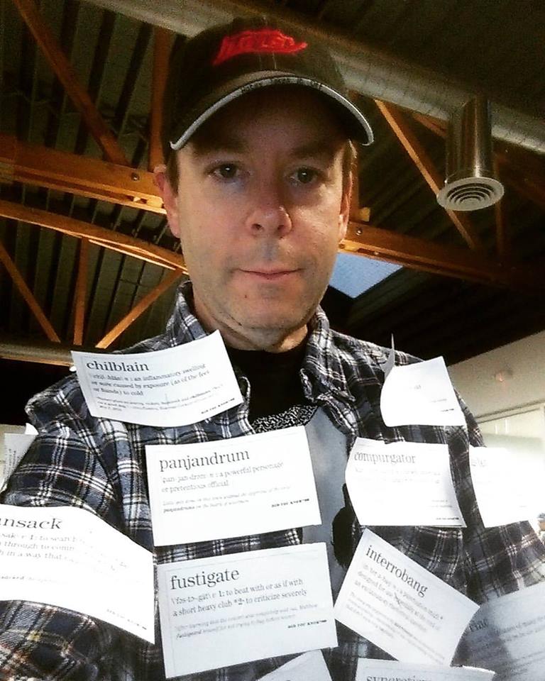 Friday we had a costume contest and potluck at work. I did not think I was going to be able to put together a costume in time, but ended up recycling pages from a “Word of the Day” calendar and came as a dictionary. It doesn’t get much more homemade than this, folks.