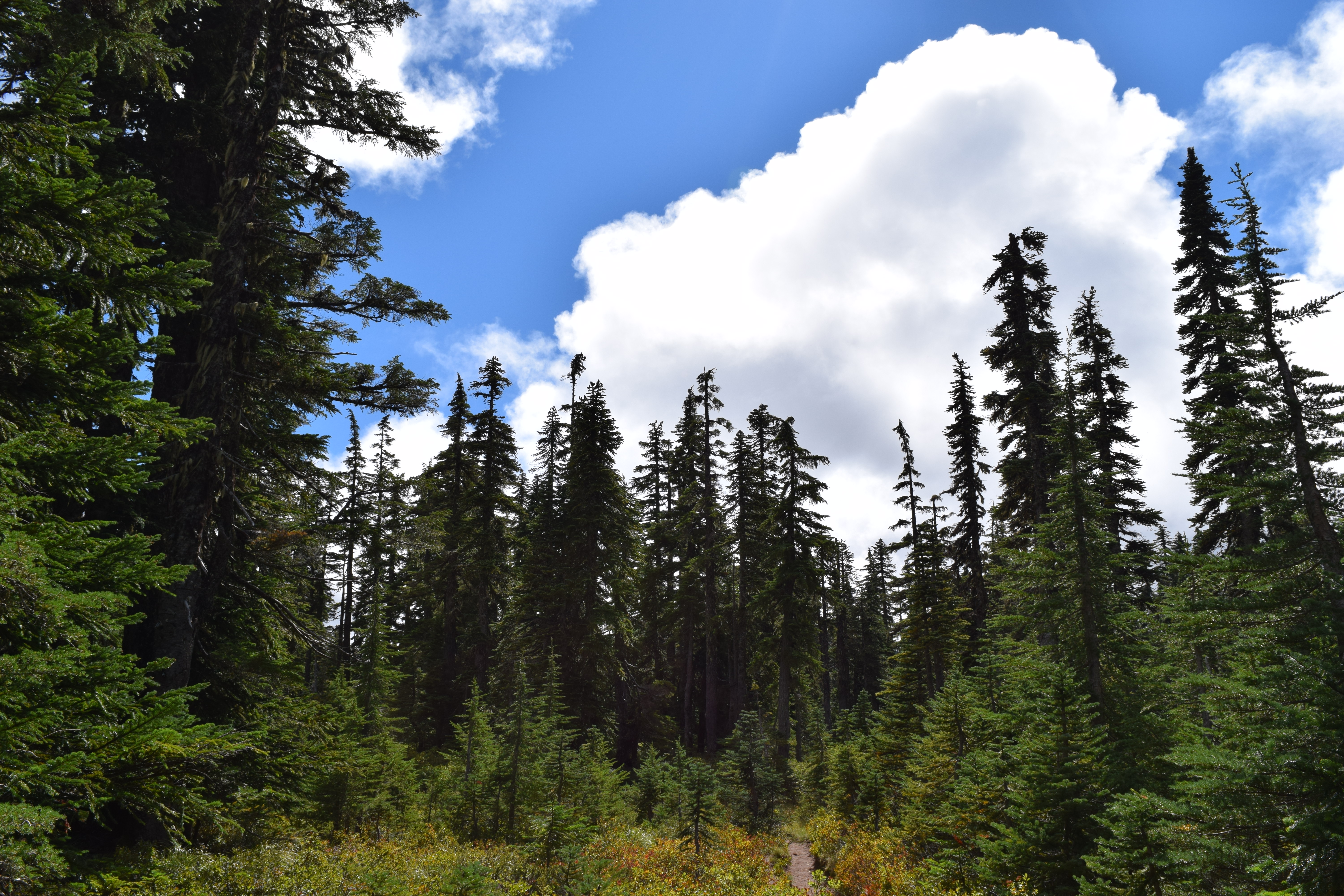 We also hiked 4.75 miles, enjoying the perfect weather. At one point we stopped for a lunch break in a lush meadow just a stone’s throw from a pristine subalpine lake, and the sun was playing peek-a-boo with fluffy white cumulus clouds that resembled cotton candy, and the whole thing was just perfect: the company, the scenery, the imminent change in seasons. And I thought to myself, Self, it doesn’t get any better than this. It’s great to have that self-awareness while you’re in the moment, rather than looking back years later and thinking how wonderful such-and-such a time was, and regretting the fact that you didn’t enjoy it more.