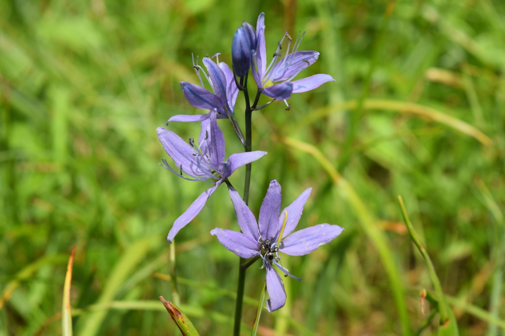 Friday on my lunch hour I took a walk through the woods and came armed with my Nikon in order to take photos of the Camas lilies, which a week earlier had been abundant. I’d taken a few photos with my phone, but they didn’t turn out great, so this time I was prepared. Unfortunately, there were significantly fewer lilies in bloom this time around, and those that I did see were getting past their prime. When it comes to wildflowers, you need to act quickly. Still, I managed a few decent shots, like this one.
