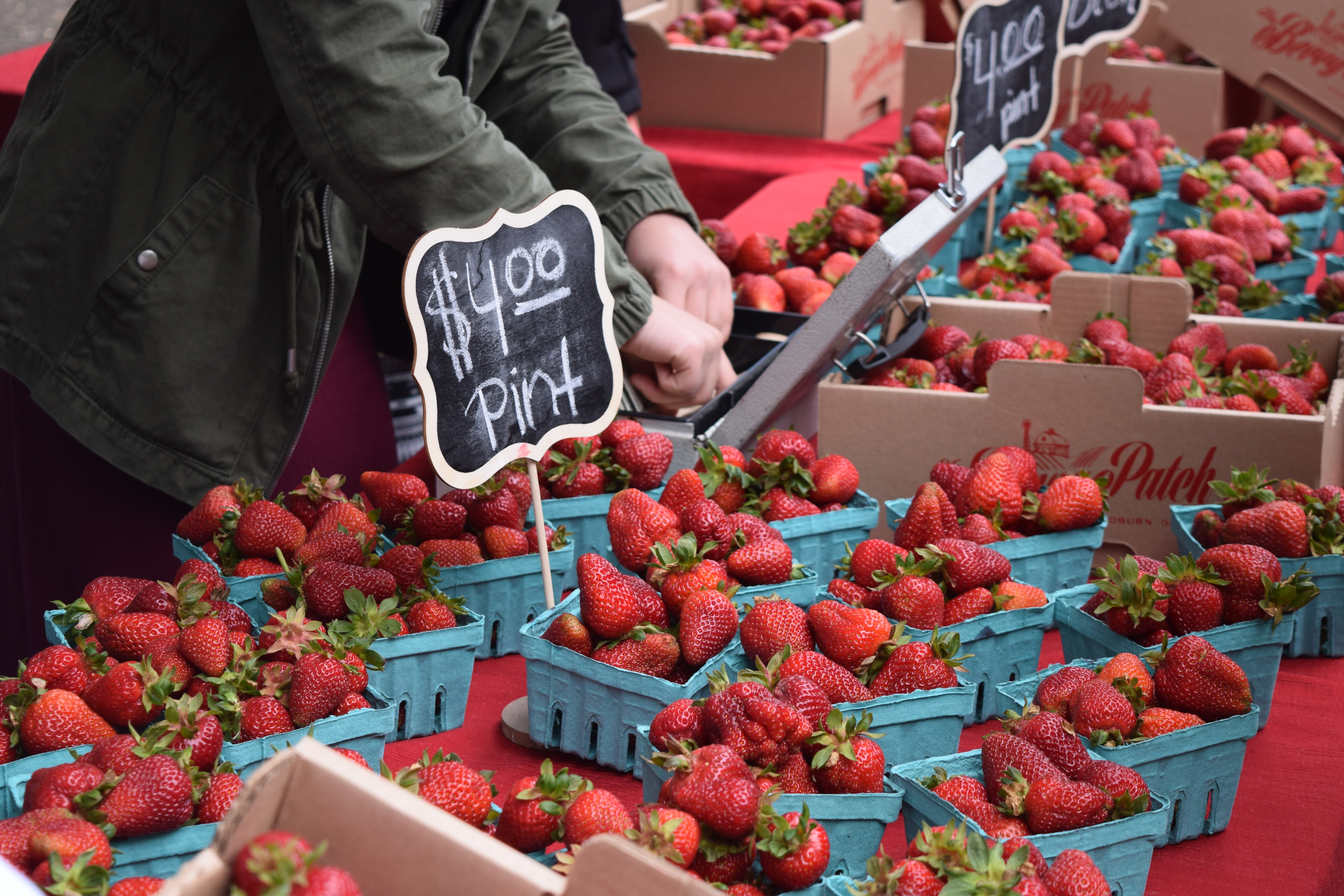 Tara and I had quite the urban adventure Saturday. We took the light rail train into Portland (just a week after the fatal MAX double stabbing that made national news…ugh) and walked to the PSU farmer’s market. Our long, wet winter and spring have delayed the hotly-anticipated arrival of fresh berries, but finally – finally! – strawberries were available. That alone made the trip worthwhile.