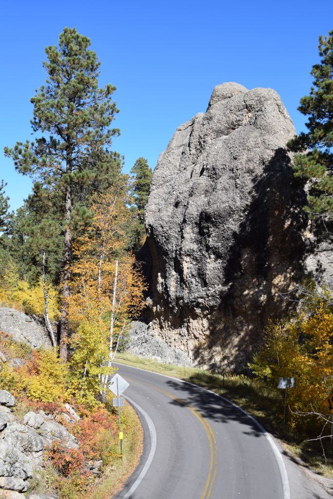 After watching them for close to an hour, we decided it was time to move on. We’d planned on doing a little hiking and it was getting late, so we pushed on, driving down the Needles Highway to the Little Devil’s Tower trail. This part of the Black Hills is especially spectacular, with stunning granite pillars that resemble castle-like formations rising from the forested countryside. Because we got such a late start we limited our hike to about 2.5 miles, but what a hike it was nevertheless. Very different from our hikes back home, which are all ferns, moss, and waterfalls. A cool wind blew through the hills and the aspens put on quite a show. My only regret was that we didn’t have more time to explore. Quite frankly, I’d like to hike the shit out of this area. There is so much to see!