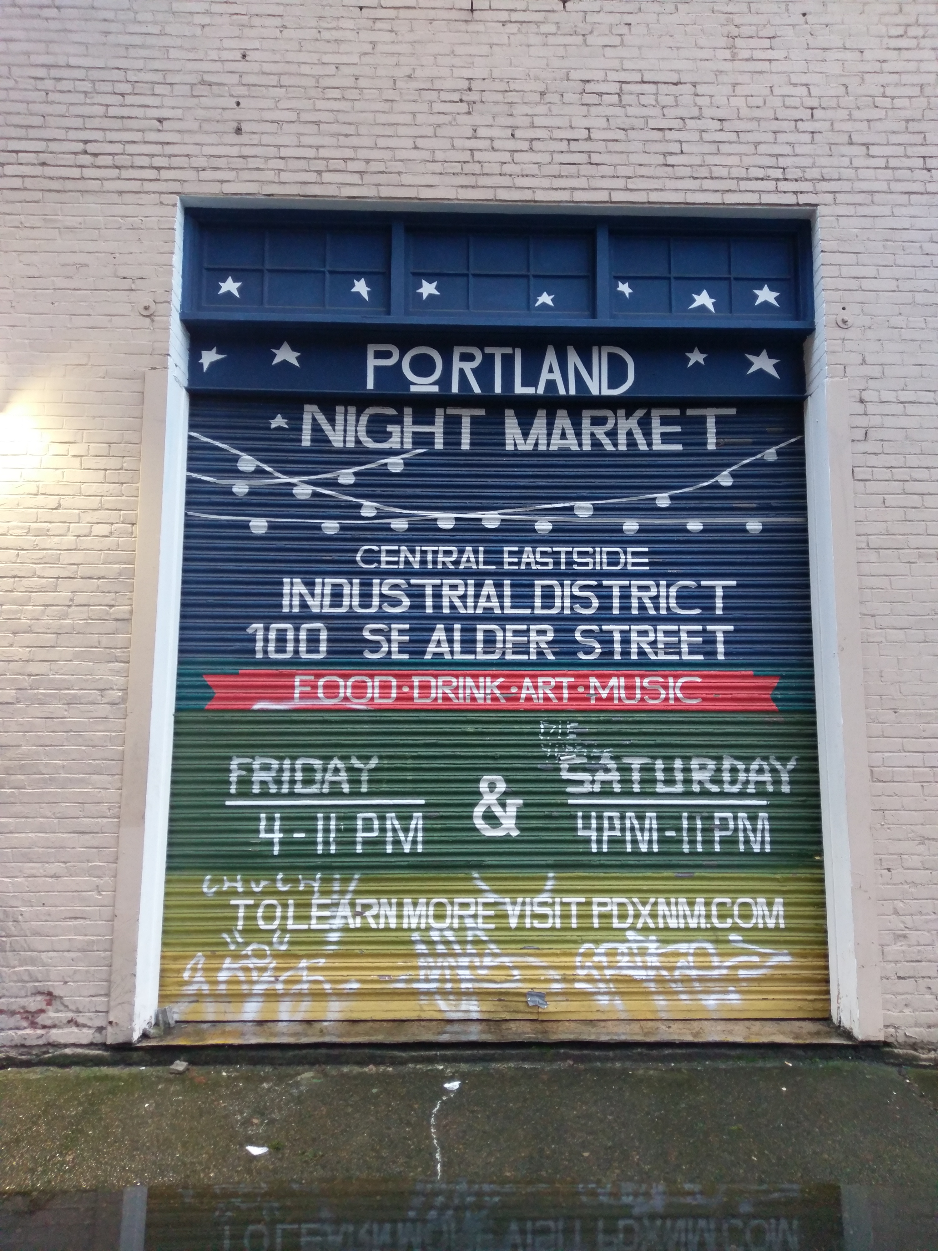 Yesterday we met up with our friend Kara, and her friend, and approximately one million other people, at the Portland Night Market. This special event is held in a warehouse 3-4 times a year and offers a great opportunity to shop for local products while enjoying an alcoholic beverage and grabbing a bite to eat. As long as you aren’t claustrophobic – because you will be elbowing your way through a sea of strangers – it’s great! We went back in May and had a blast, so we added it to our Farewell Tour list and now have one more item crossed off. It was a lot of fun, and we ended up enjoying some really good food that included a Korean fried chicken bowl, street tacos, pelmini, and miniature donuts from Pip’s (Voodoo and Blue Star hype aside, these are probably the best in the city). I doubt we’ll go again, though. The idea of dealing with those crowds is exhausting, and I’m in full-on “been there/done that” mode now.