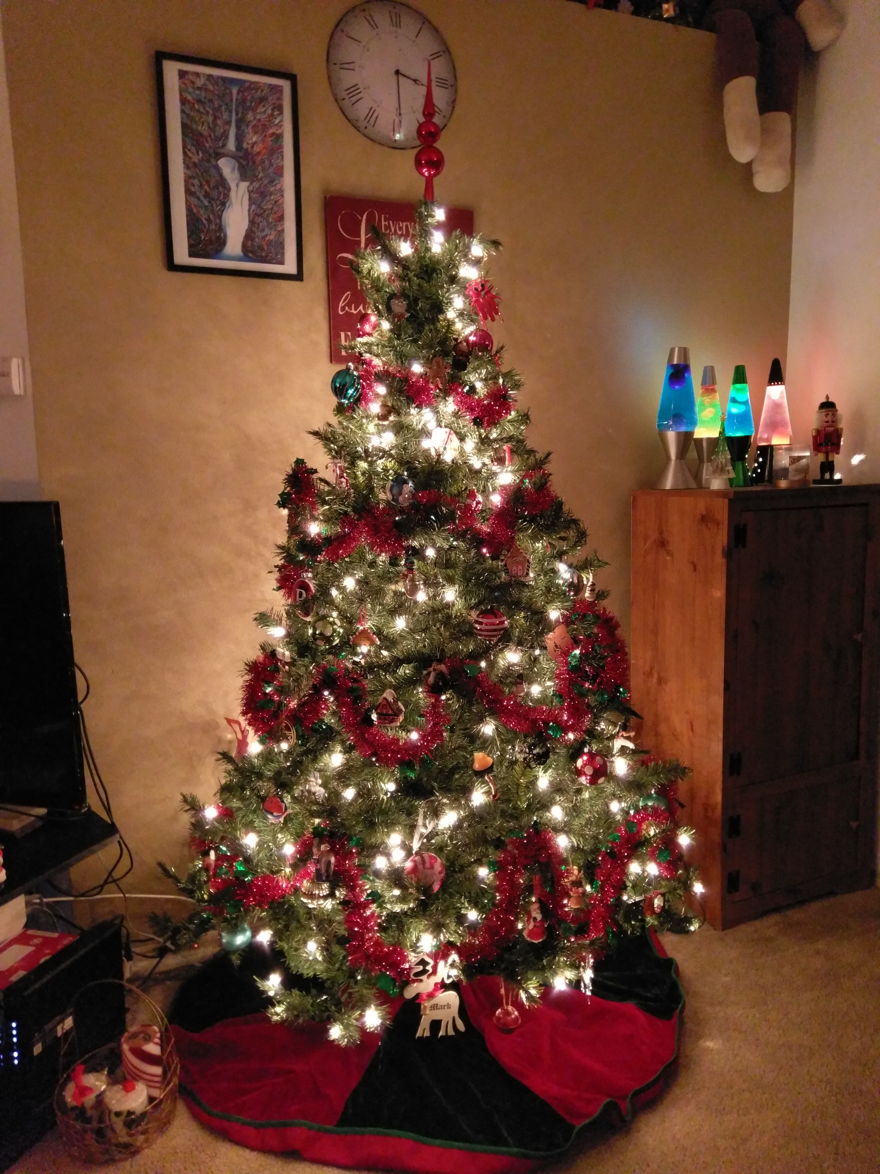 Yesterday, we finally got the apartment decorated for Christmas. (Ha, I say “finally,” but we’re only a couple of days into the month. Some years, my dad didn’t put the tree up until just a few days before Christmas. That and the fact that I never had a Big Wheel proves I led a deprived childhood.)