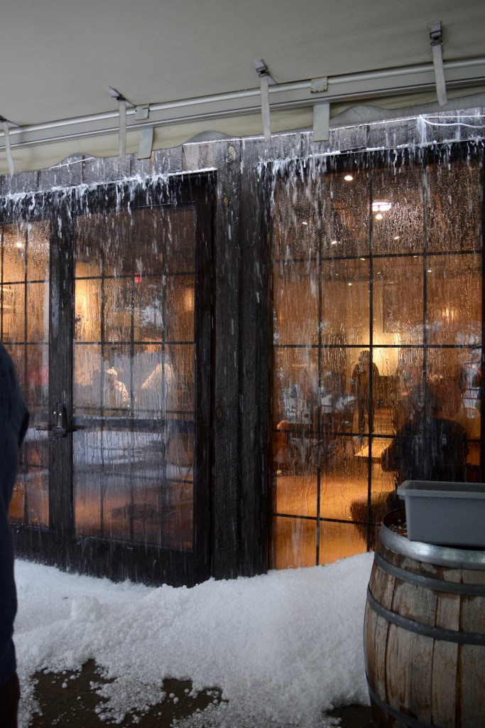The temperature dropped about 30 degrees and we were suddenly shivering, so we made our way inside to find staff members mopping up water that was seeping into the place. And then on the way out, they were shoveling it off the sidewalk as if it were snow. Unreal!