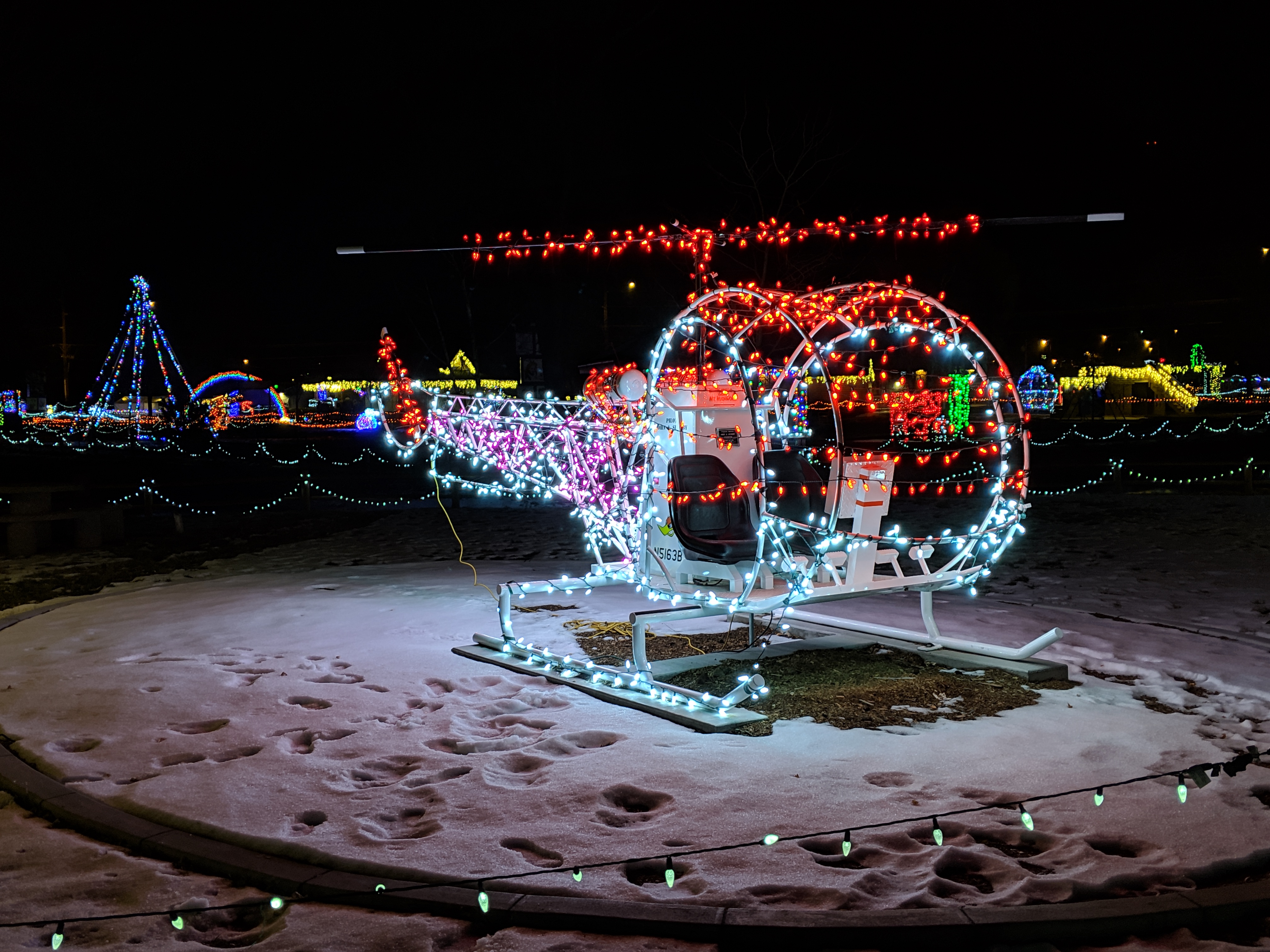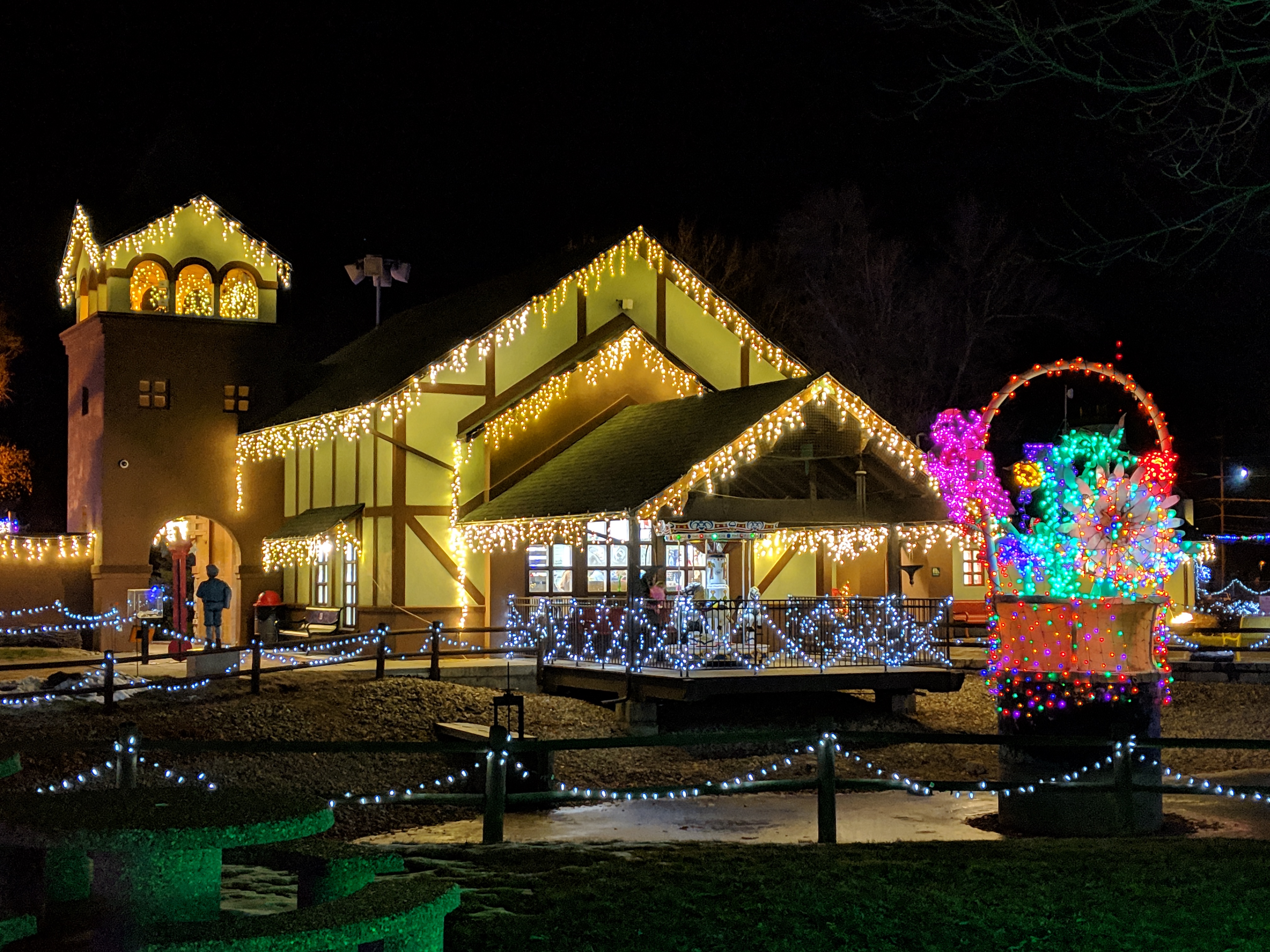 Being new to town we didn’t know where the good Christmas light displays were, so Tara asked her coworkers and they all unanimously agreed that Storybook Island was the place to be. I’d never been before, because it’s a children’s theme park and even when we lived here in the 80s I was too old to enjoy it, but every Christmas they string up thousands of lights – and that’s fun for any age. So we headed out there Friday evening, and the place did not disappoint. We enjoyed walking around even if it was freezing cold.