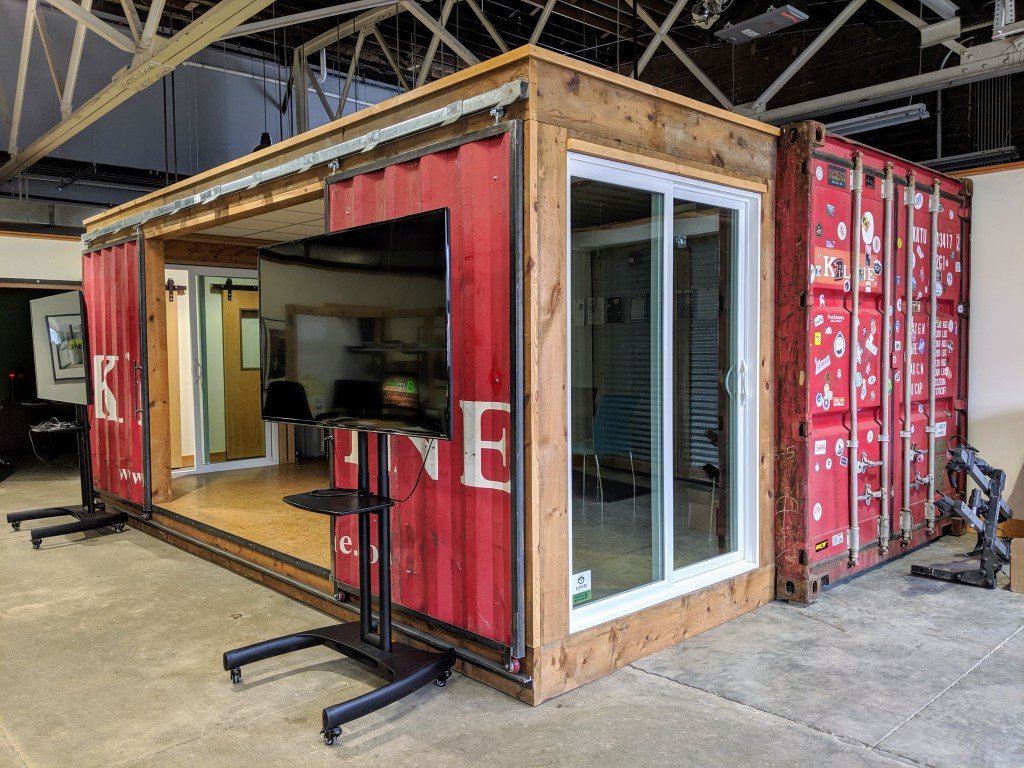 Other cool things about the office: the exposed brick, the wall of glass windows, the conference room made out of a shipping container, and the popcorn machine. Yeah…I’m totally digging this place.