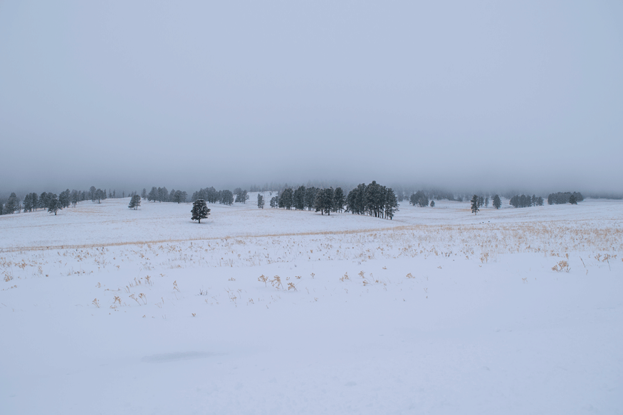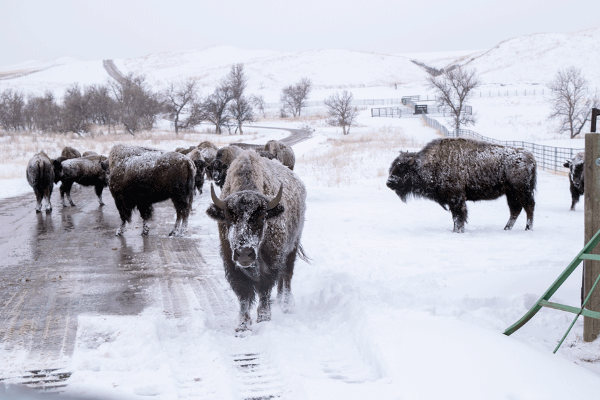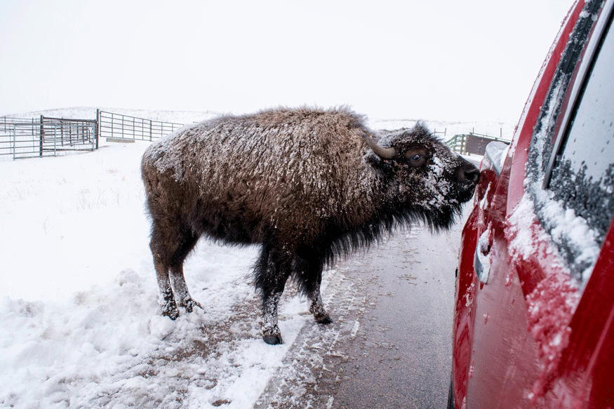 After such a rough week, we needed to do something fun yesterday. So we got up super early and hit the road for Custer State Park not long after sunrise. Not that there was a sun in the sky we could even see; we’d gotten 6″ of snow overnight and it was still falling when we left. The whole day was gloomy: foggy, with flurries and drizzle, and temps in the mid-20s. We got to the park, which is essentially a 71,000-acre wildlife reserve, and pretty much had the whole thing to ourselves. We spent two hours driving the Wildlife Loop. In that whole time we saw one snowplow, two other cars, and countless antelope and bison. I’d say we earned an A+ in social distancing on Saturday!