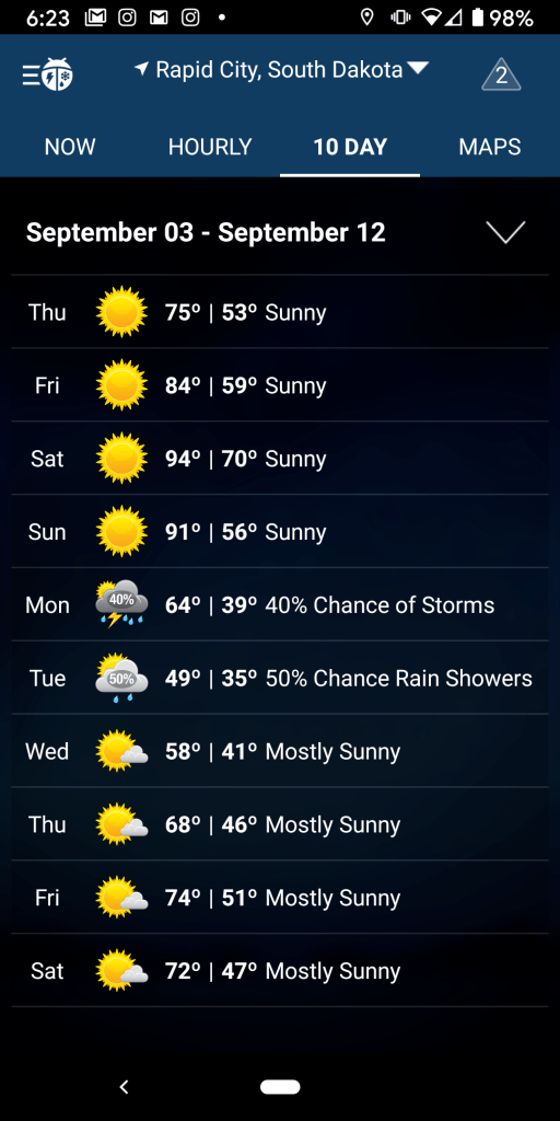 Speaking of, now that we have entered the calendar period where the months end in BER, our weather has gotten a lot more bipolar….right on cue. Check out our 10-day forecast: