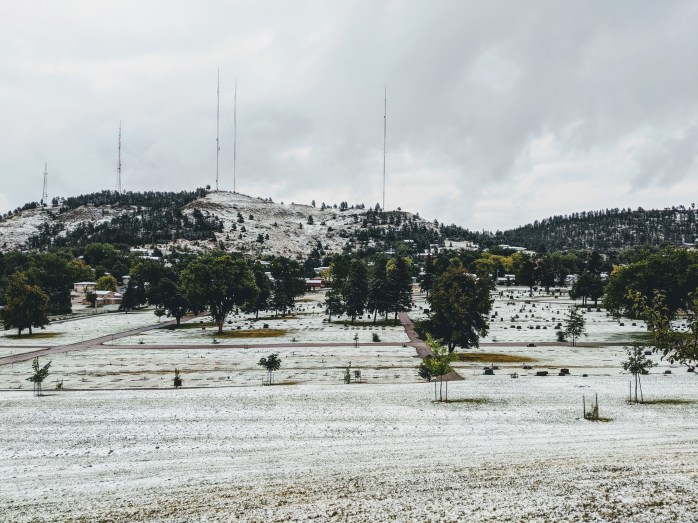 Rapid City set records for earliest freeze, earliest snowfall, and most precipitation for the date. Granted, it amounted to less than an inch and was all melted by afternoon, and it’ll be back in the 80s next week, but still. We’ve had our heat on and it’s been weird bundling up to go outside. I even got to try out the heated seats in my Kona (looove). Some places in the Black Hills received over a foot of snow! Needless to say, after the low this morning dropped into the 20s, I’m pretty sure our garden is done.