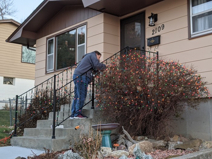 This is only the beginning. My competitive spirit demands we up our game. We plan to buy more lights tomorrow and keep going. And Tara bought a very special yard decoration that will arrive from Amazon in a few days. Can’t wait to show you that!