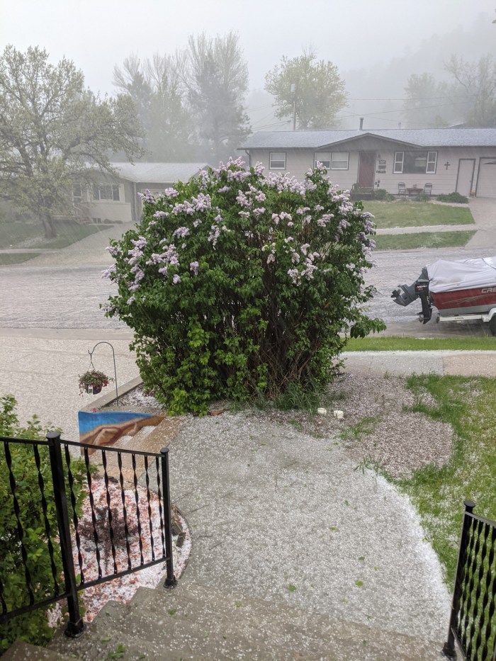 Luckily, no warning sirens went off. While the squall line that passed through brought copious lightning, 60-mph wind gusts, heavy rain, and hail, we didn’t have to hunker down in the basement. And the vegetable starts are fine. As for the hail, we’ve seen a lot worse.