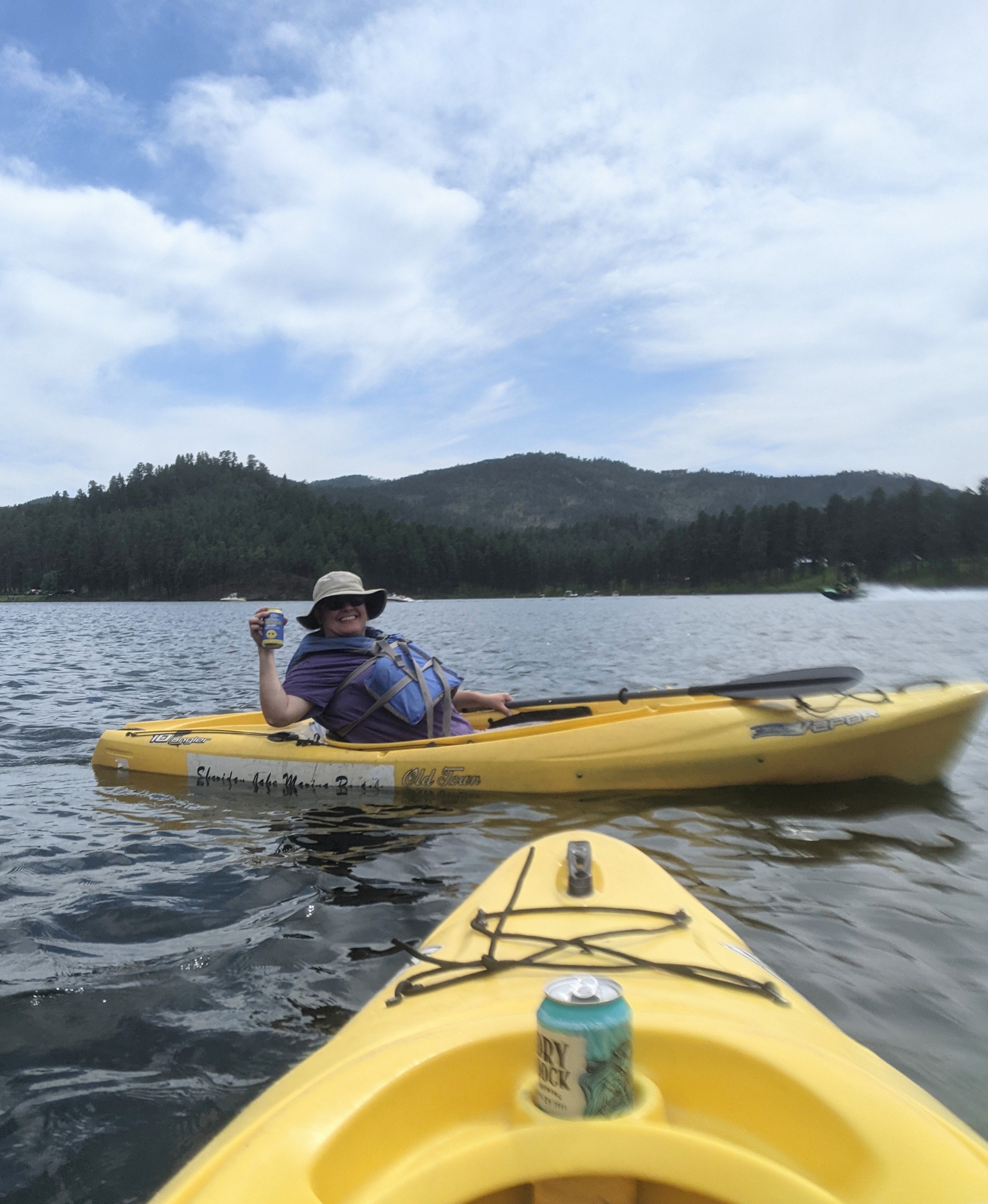 We’d reserved kayaks from 2-6 p.m., so we drove to the marina at the appointed time. Having never set foot in a kayak before, I had some trepidation, envisioning worst-case scenarios that all involved me submerged in water. But I’m happy to report that nothing bad happened. In fact, kayaking around the lake was such a blast, I was instantly hooked. They are incredibly easy to maneuver and much faster than I expected. Plus, there are cupholders that give you convenient access to a can of beer. You know…if you were so inclined…