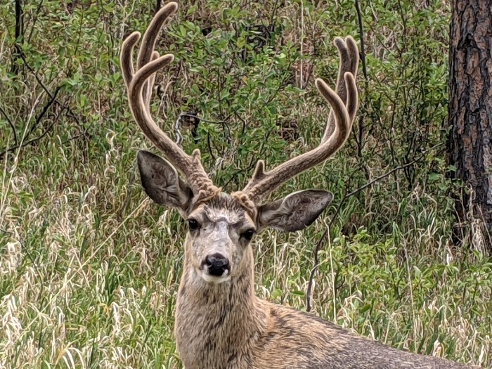 I was a little nervous about approaching. I mean, look at those antlers! They could cause serious bodily harm. But I proceeded cautiously and got within a few feet of this particularly velvety fella. He watched me nervously for a few minutes, and finally trotted off when a jogger came along the trail.
