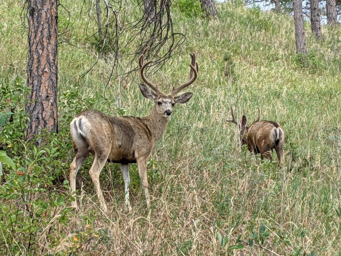 We get deer in our backyard all the time, so seeing them isn’t exactly a novelty, but it’s a little rarer to come across a trio of full-grown bucks.