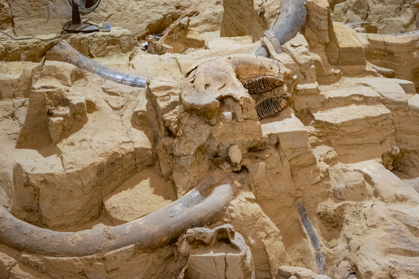 The day before, we drove down to Hot Springs to check out the Mammoth Site. It’s been on our list for years, but this was our first visit. In 1974, they were leveling ground for a housing development when a heavy equipment operator discovered a bright white object protruding from the ground. It turned out to be a tusk. As you can imagine, this isn’t exactly your run-of-the-mill find when plowing earth, so they called in a bunch of really smart guys from nearby universities. Long story short: the site is an ancient sinkhole containing the fossilized remains of 61 (and counting!) Columbian and woolly mammoths. How cool is that?