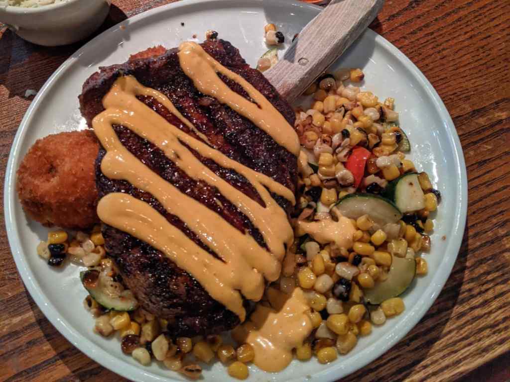 Our first stop was Billy Frogg’s, a college bar with eclectic decor. After grabbing a drink there, we wandered over to Upstream Brewing, which was a little more our speed. Settled in with cocktails and eventually ordered dinner. I couldn’t resist ordering a ribeye, because Omaha steaks are a thing, right? Totally lived up to the hype.