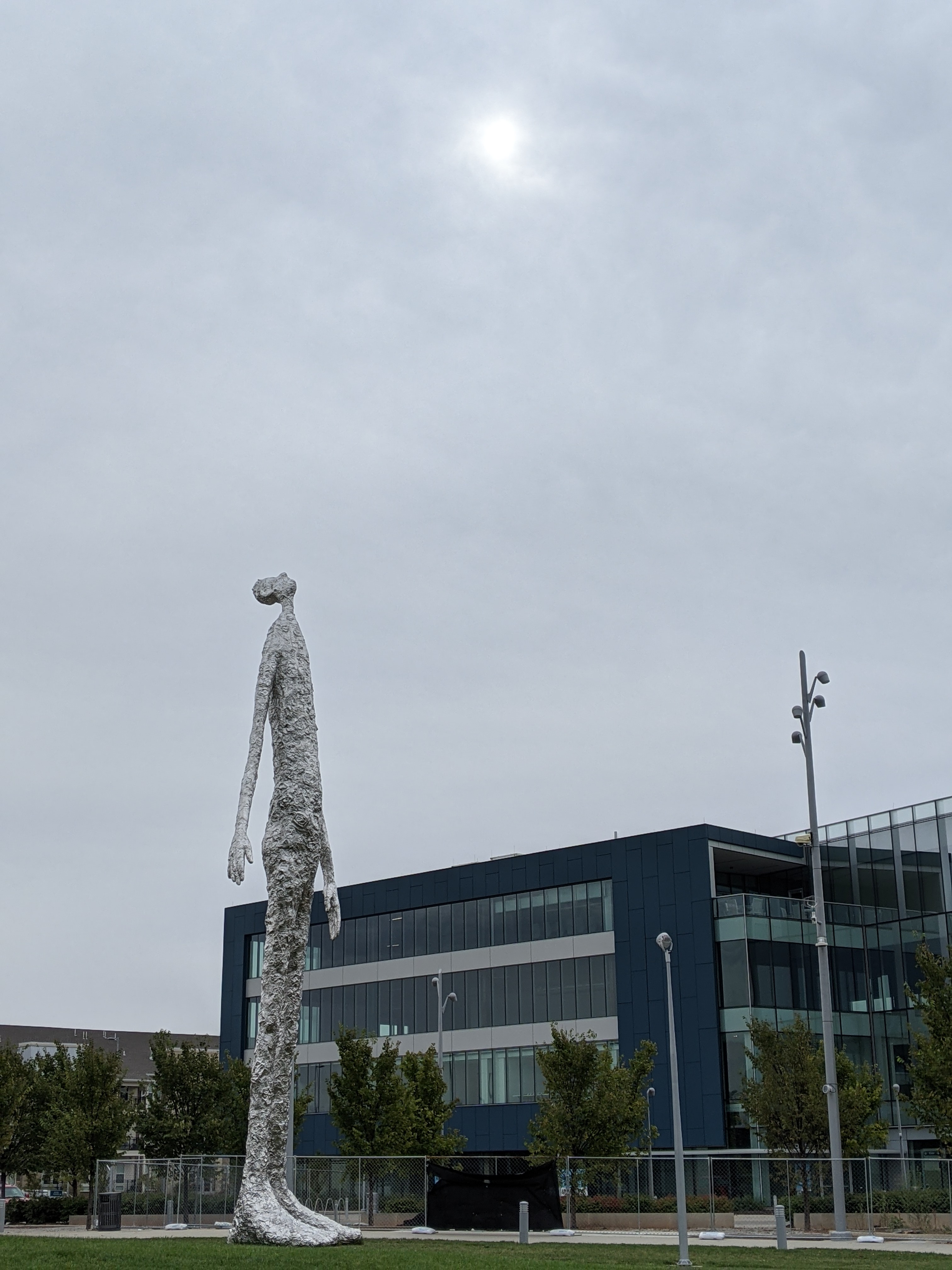 Council Bluffs, Iowa, is on the other side of the river. There’s a cool pavilion there with a 30′ statue made out of aluminum pie plates and trays. That’s one way to recycle! You also get a great view of the Omaha skyline from the pavilion.