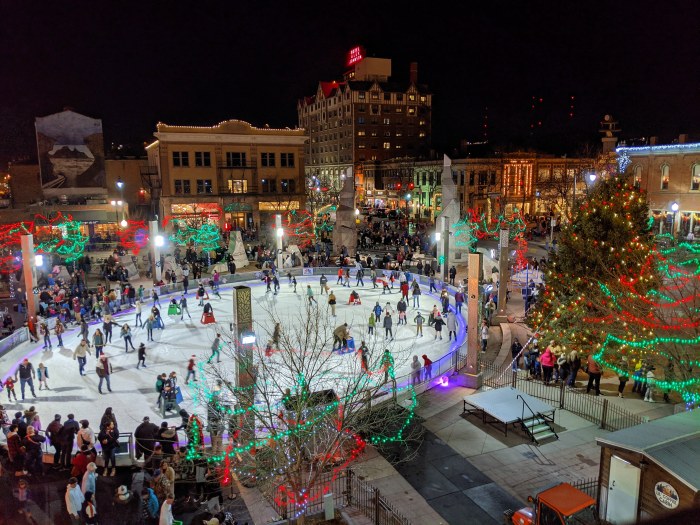 We had about 40 minutes before the official tree lighting ceremony in Main Street Square and figured grabbing a drink would be a great way to kill some time. But then, we had a conversation that went a little something like this: