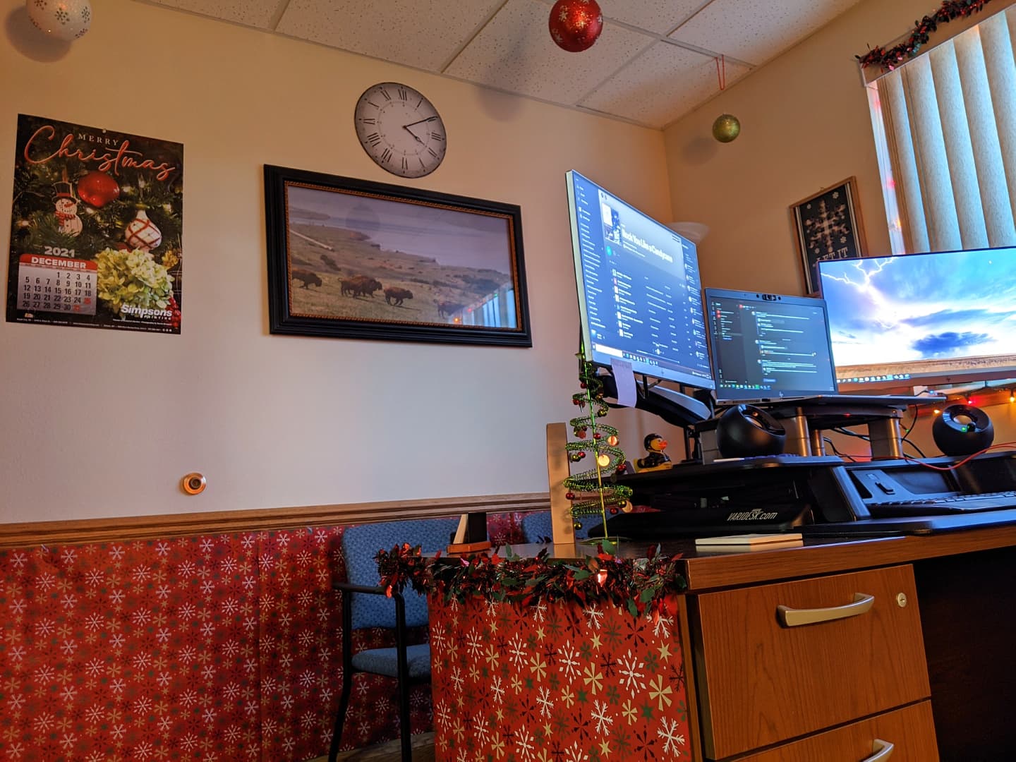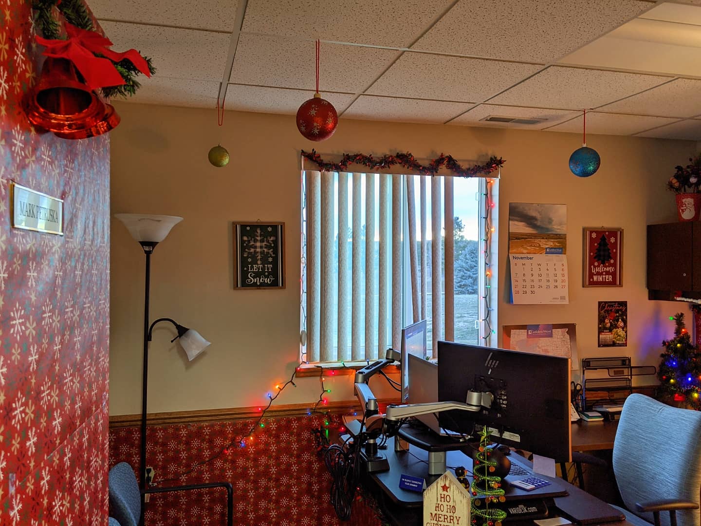 You might recall that I went all out last year and ended up winning a gift card for my efforts. Well, CenturyCo is once again having a bunch of theme days, complete with prizes, to celebrate the holidays. Last year, I warned my supervisor that I’d held back on the decorations. New guy and all. This year, I did not hold back.