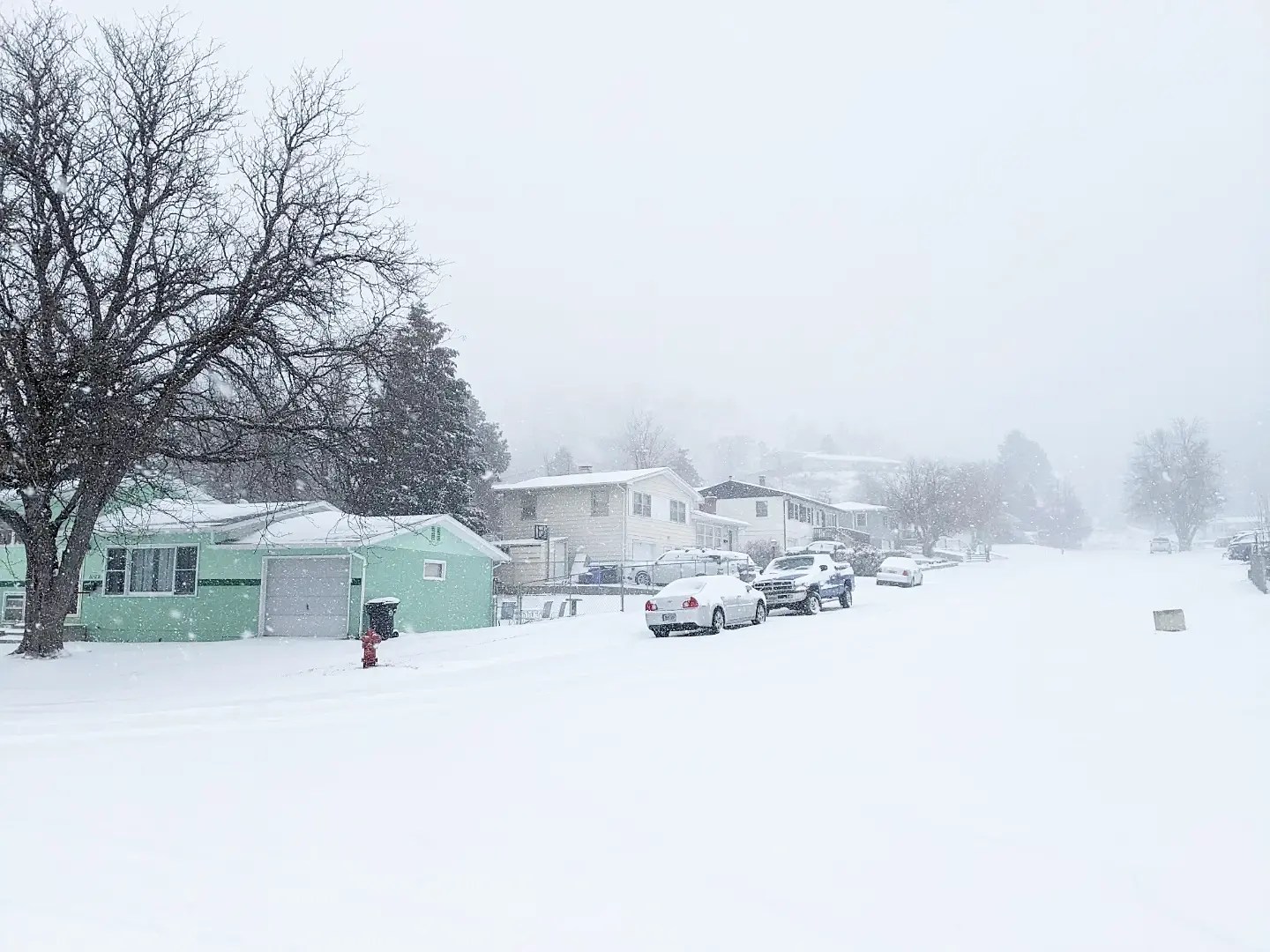 Here’s what it looked like yesterday at noon, from the top of our street.