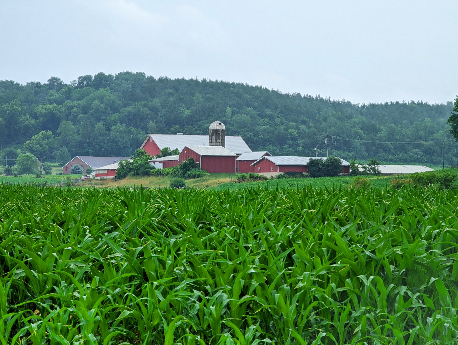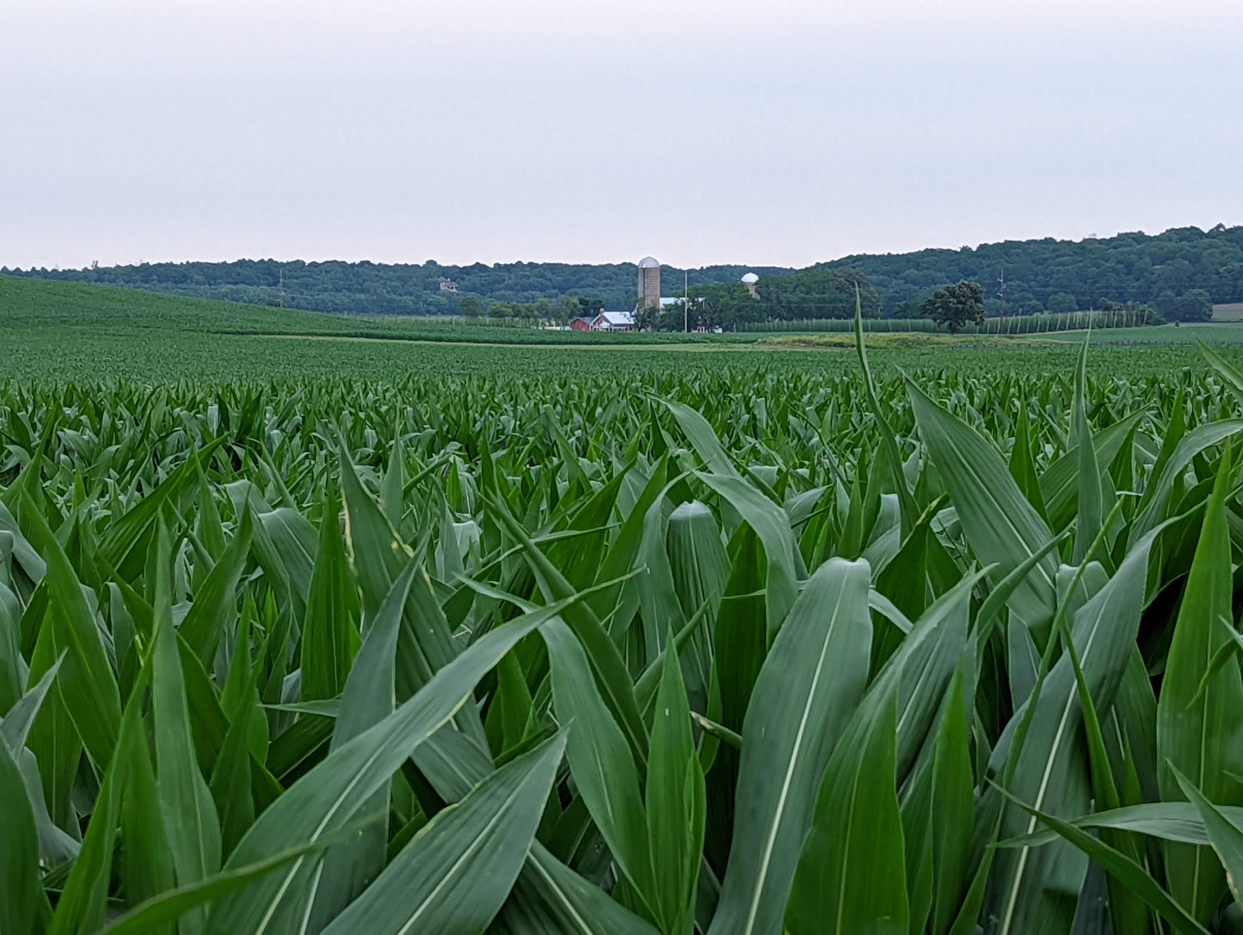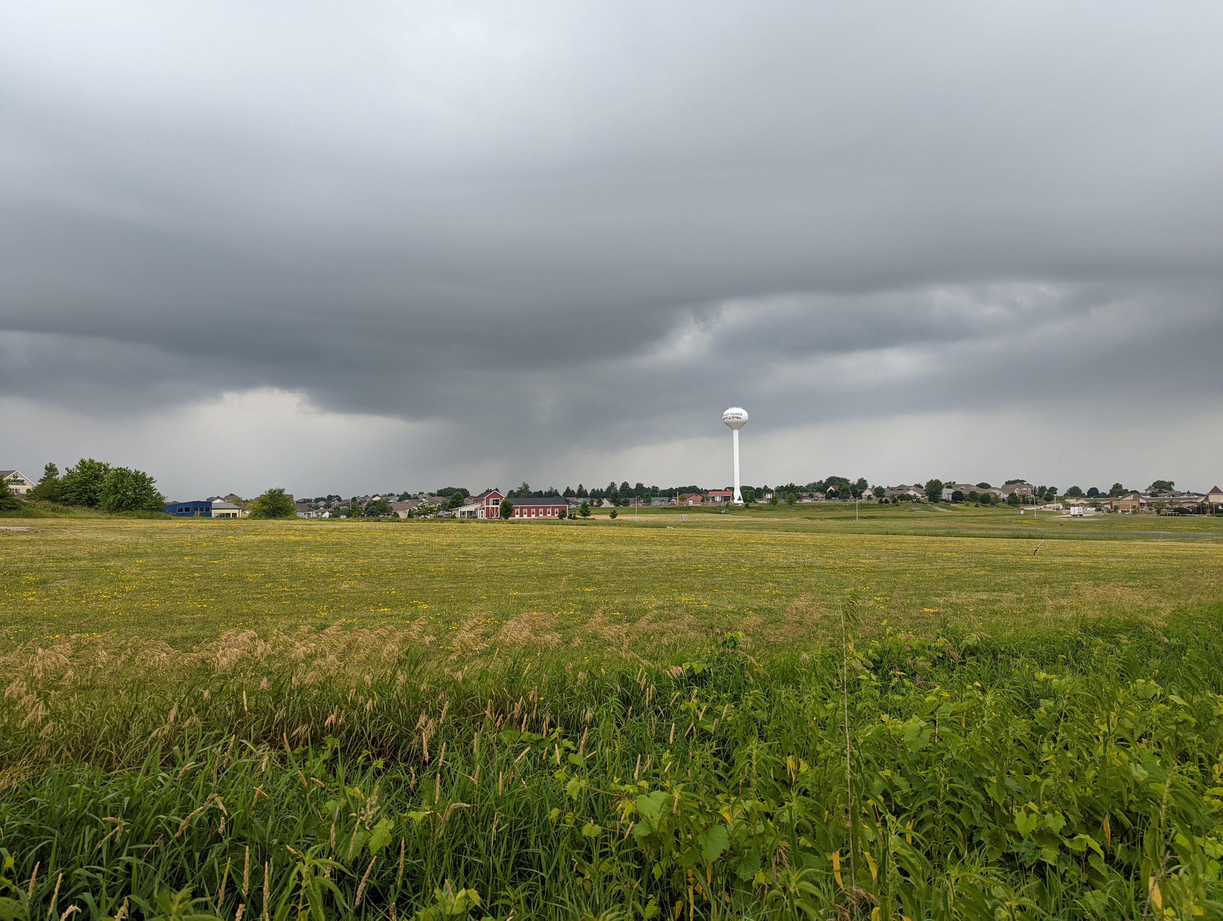 Our plan was to make a big loop around Madison, checking out the various suburbs. We picked a good day to do so, as the weather wasn’t great—warm, humid, with showers and thunderstorms. Fortunately, we were in the car most of the time, though we did find a brewpub in Sauk City for lunch. The patio area looked lovely, but because it was pouring rain, we opted for indoor dining. Not that we had a choice.