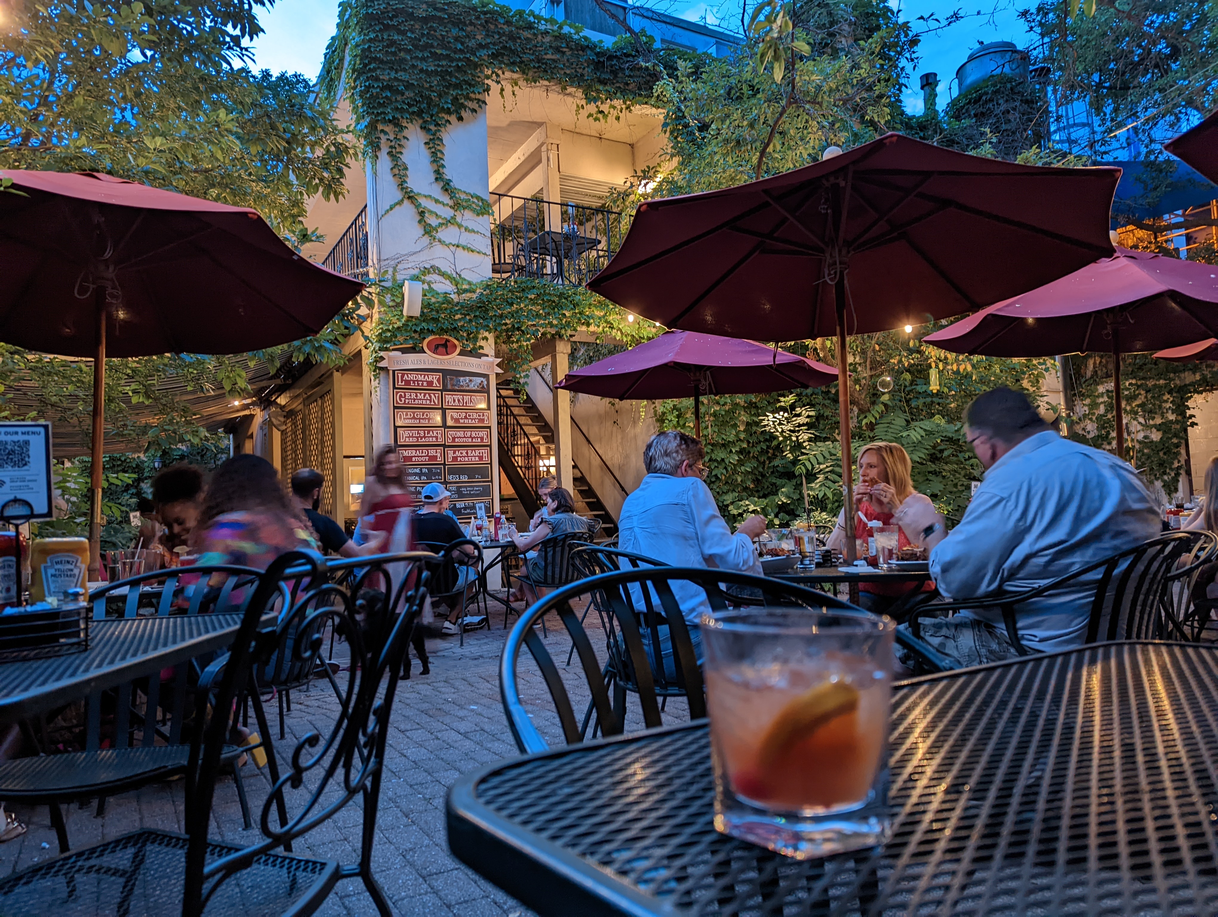 Back in Madison, we walked down to Great Dane Pub & Brewing for supper and drinks. We snagged a corner table in the beautiful backyard patio, surrounded by tall ivy-colored walls and bedecked in string lighting. It was very cozy and inviting, and the food (again) did not disappoint.