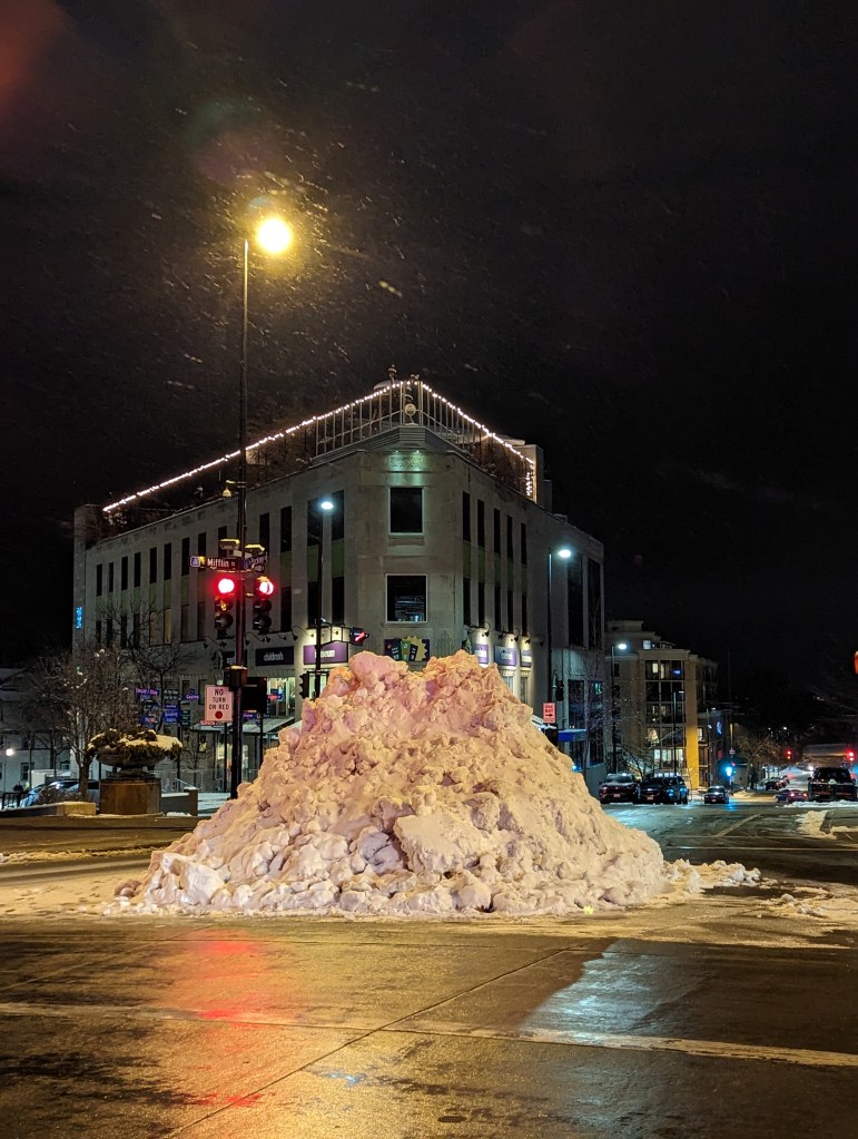 It’s a winter wonderland out here, by the way. There’s snow everywhere. Covering the trees, blanketing the fields. So much, in fact, that it’s piled up in the middle of the street in Madison. With daytime temps in the teens and even colder weather coming, it won’t be going away anytime soon.