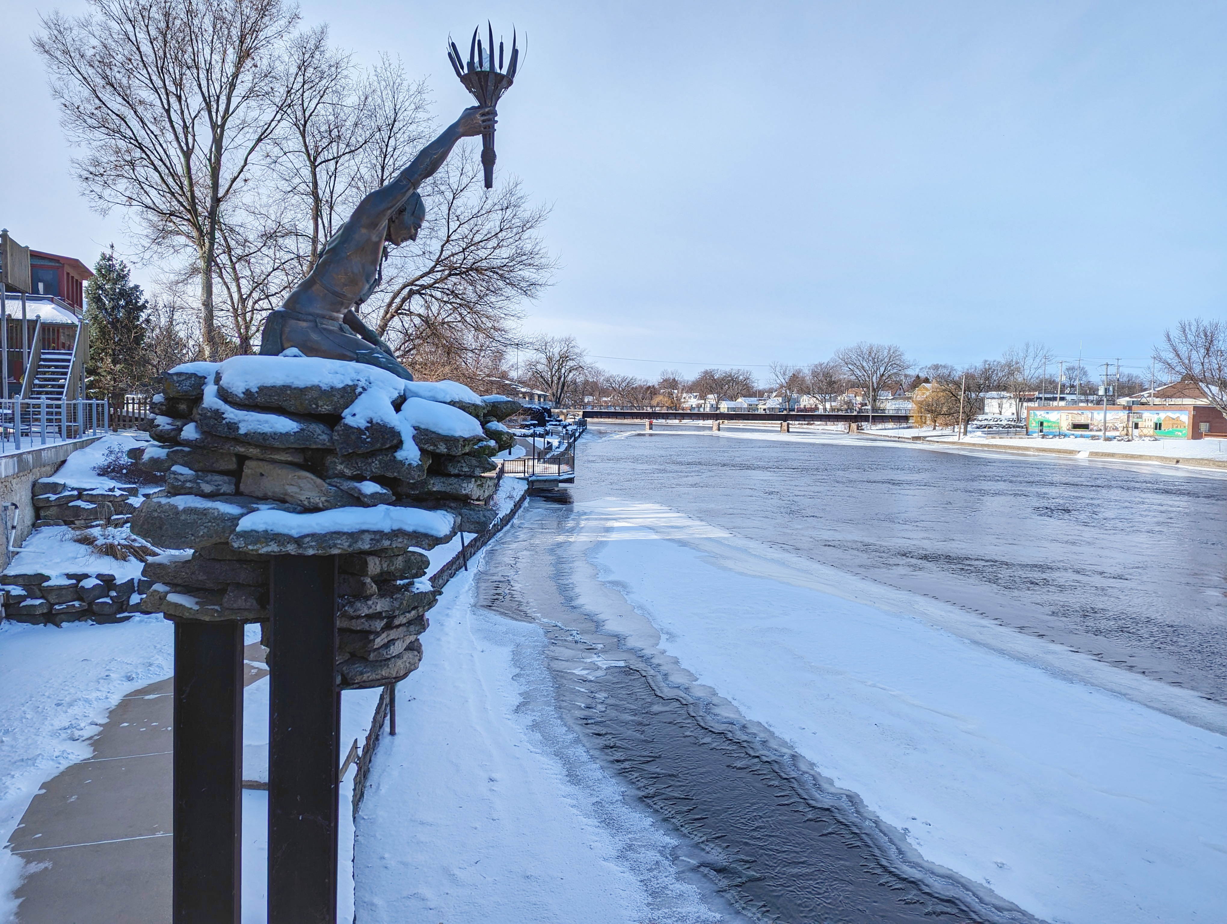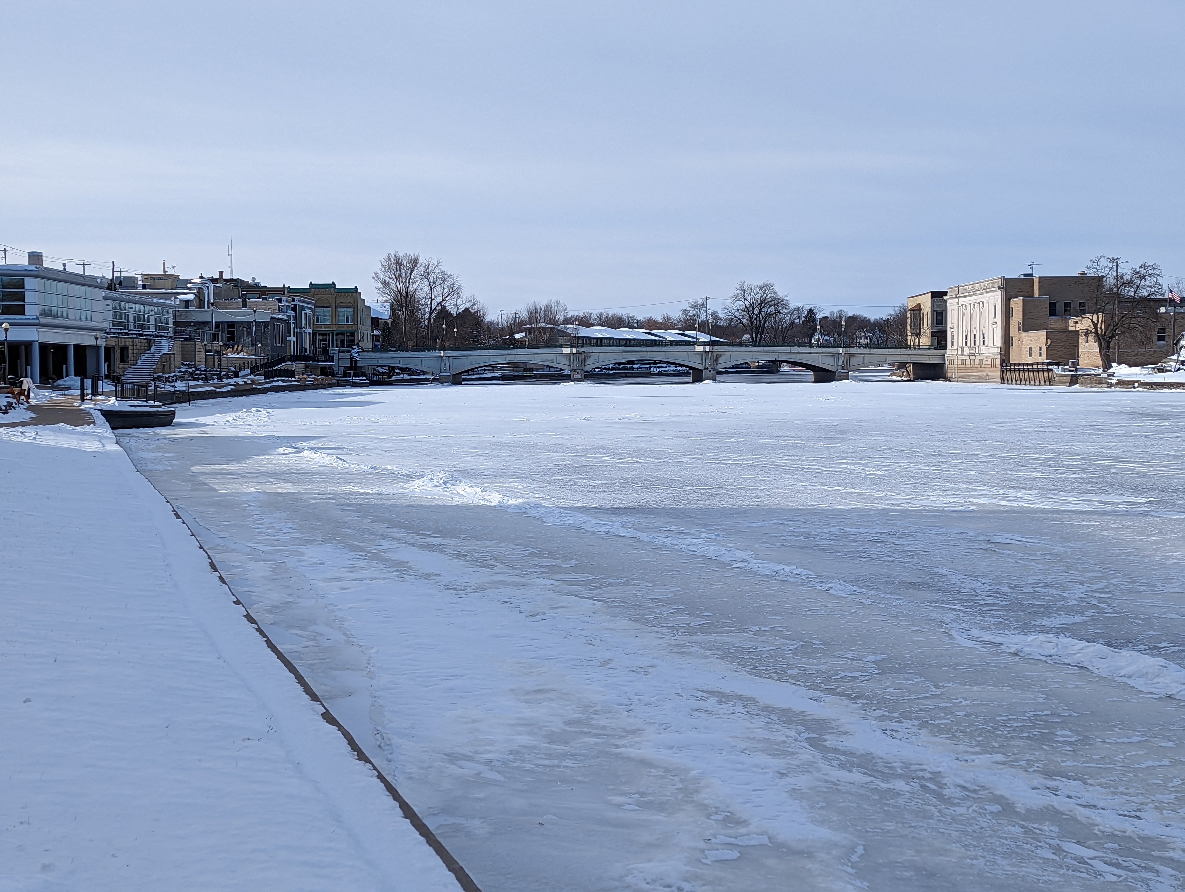 Christmas Day itself was perfectly chill (figuratively and literally). It did warm up to 10º and the wind died down, so I took a nice long walk downtown and along the partially frozen river. Bundled up in flannel-lined jeans, a hoodie, a winter coat, ski gloves, balaclava, and beanie, I didn’t feel the slightest chill. I didn’t feel anything, actually. A rabid badger (because this is Wisconsin) could have attacked me and I would have just patted it gently on the head.