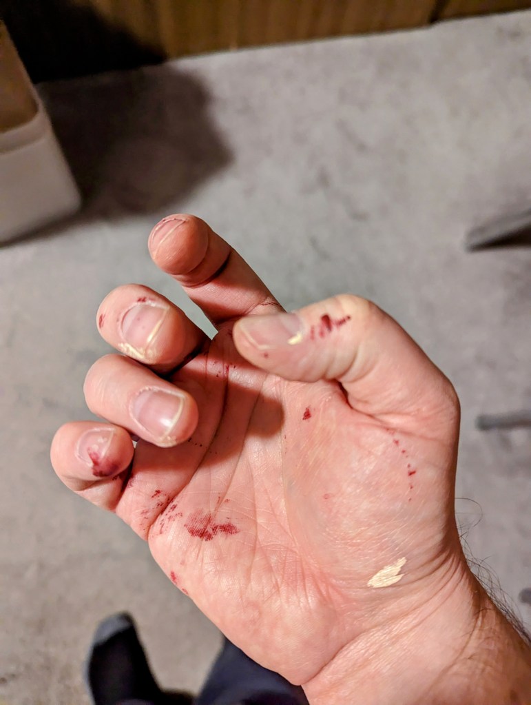 The one saving grace? Since we’re replacing all the flooring, we didn’t care about paint splattering onto the carpet. Adding drop cloths to the mix would have sent me over the edge.
