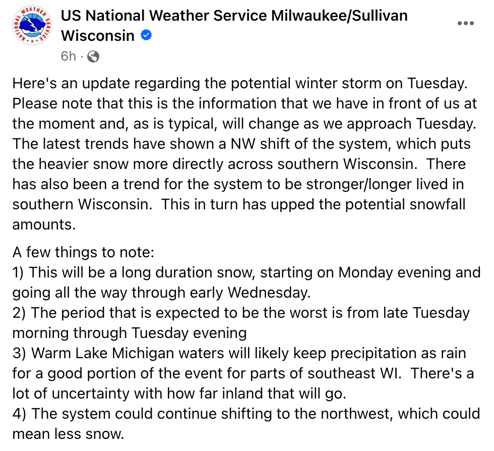 I remain a bit skeptical because, for a snow lover like me, this seems too good to be true. Especially given our recent warmth and lack of snow. But the National Weather Service seems on board.