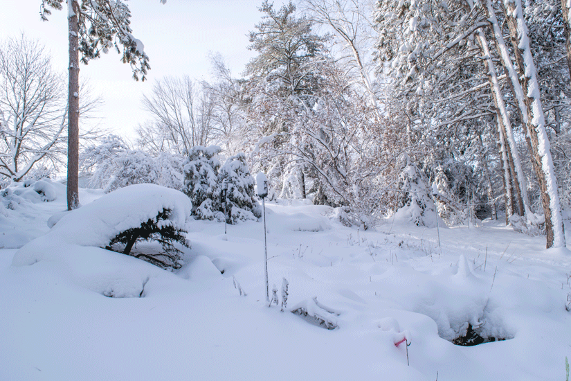 Our poor Amur maple, the one we decorated so nicely for Christmas, couldn’t bear the weight and a couple of large branches snapped off. Don’t worry; it’ll live to see another day. It’ll just be slightly less shapely.