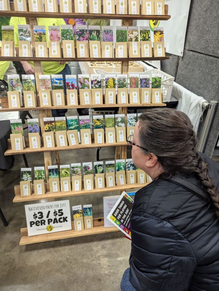 No such weather excitement this weekend. In fact, there wasn’t a cloud in the sky on Saturday. Not that we’d know, as we were mostly indoors. We spent a couple of hours at the PBS Wisconsin Garden & Landscape Expo at the Alliant Energy Center in Madison, where my wife geeked out over seeds. As she does.