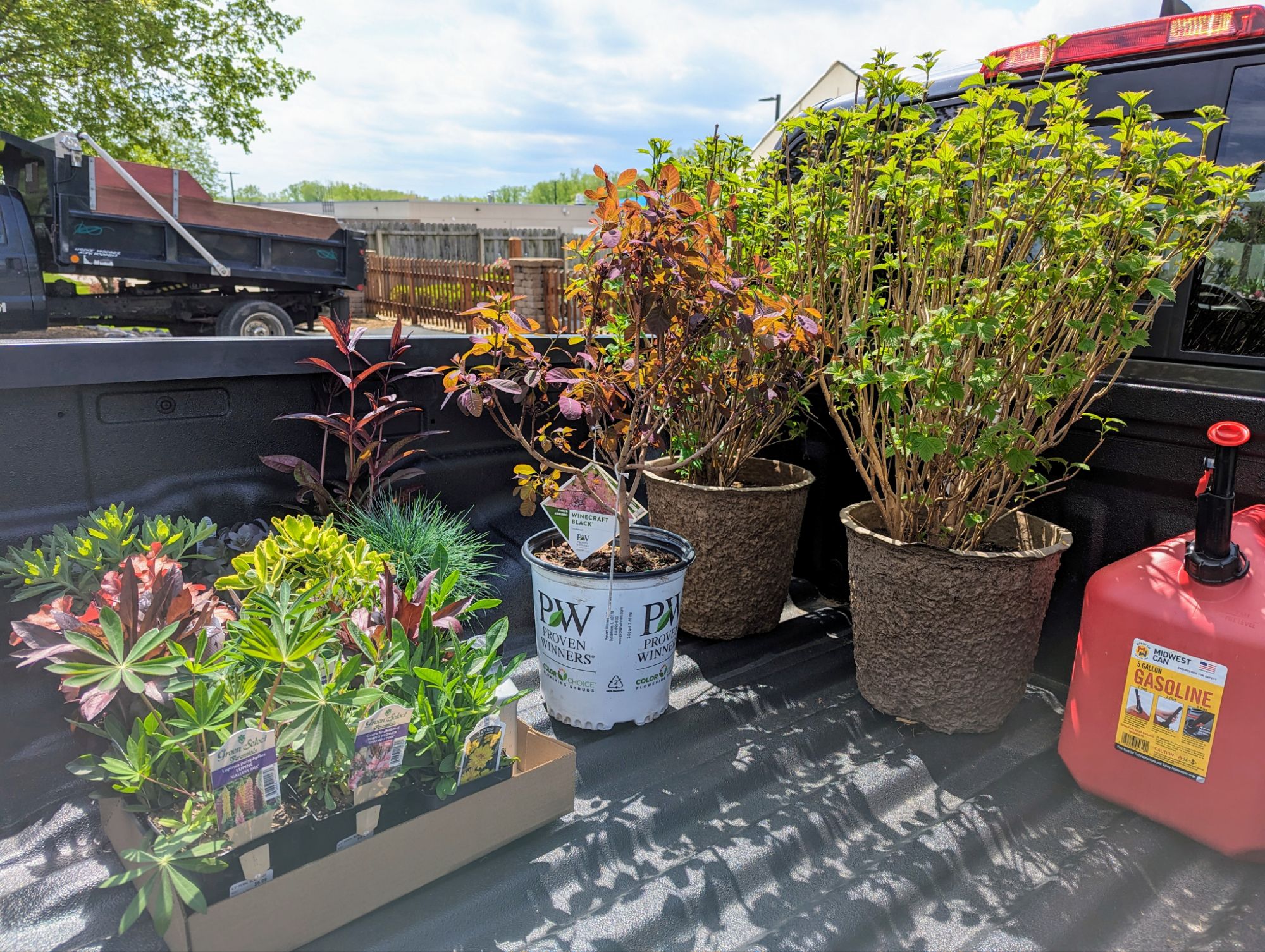 Not so beautiful? All that rain has fueled an explosive mosquito population. The bloodthirsty pests swarm around your ankles with every step you take across the yard, so unless you douse yourself with OFF!, it’s a suicide mission. Fortunately, we’ve got a ready supply on hand, ’cause we’ve got a lot of planting to do. Not only has my gardening-freak wife been filling the basement with tomato and pepper plants she started from seed back in January, but today, we stopped by our local garden center and loaded up on perennials and shrubs.