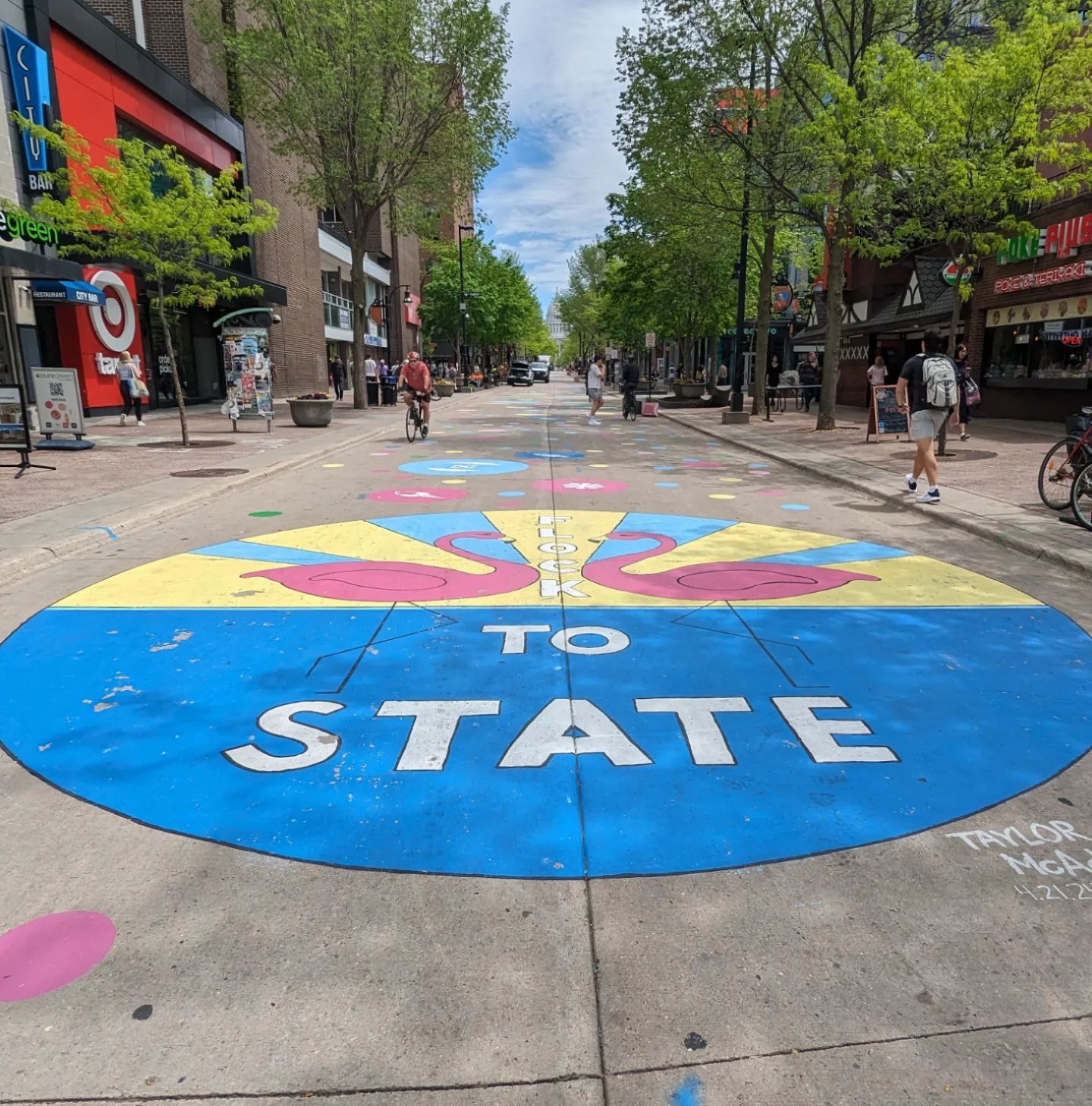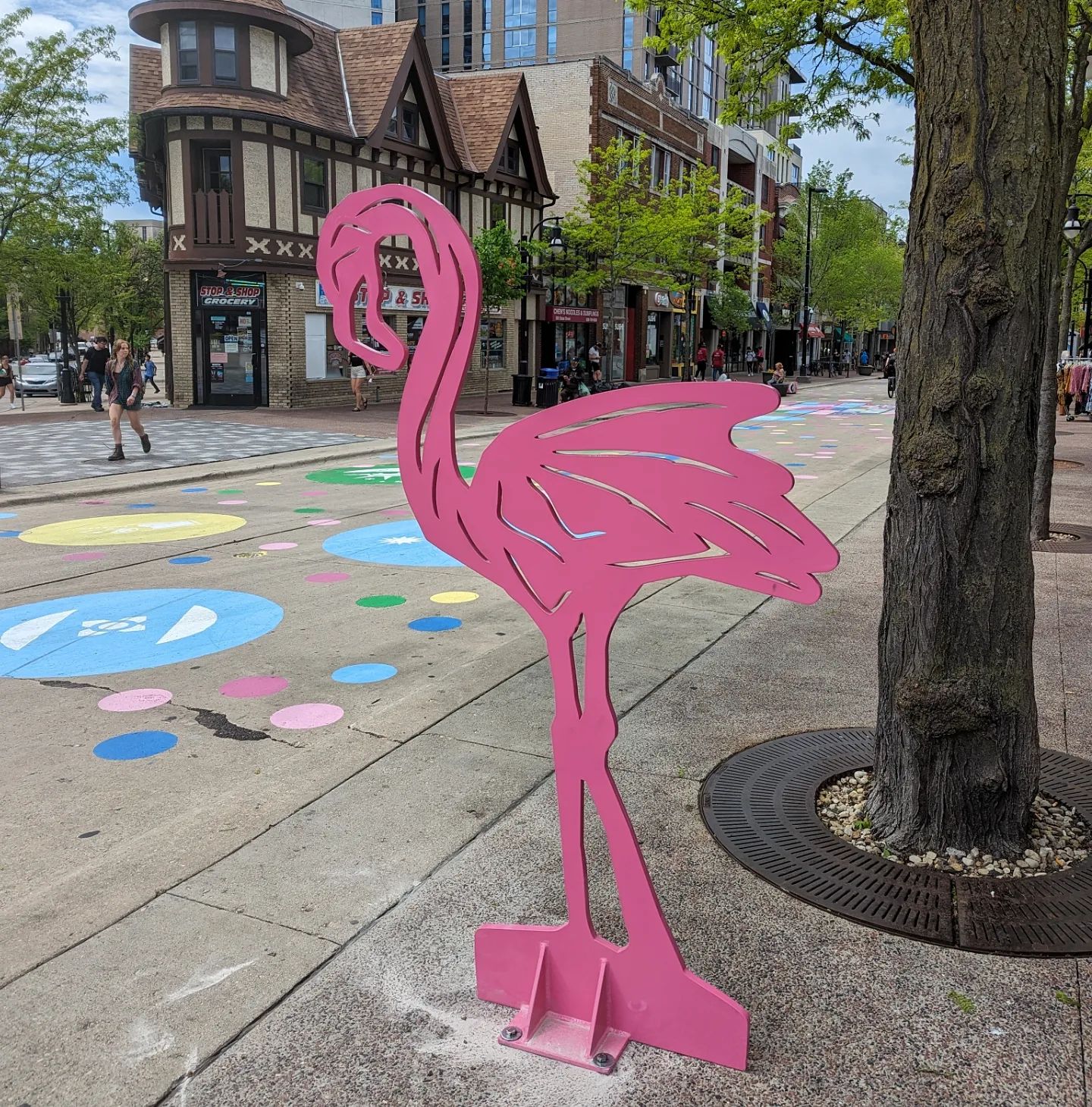 Now, the city is experimenting with turning a portion of State Street, a major downtown thoroughfare connecting the capitol to the university, into a pedestrian mall. In preparation for this, hundreds of volunteers helped local artists decorate the pavement with polka dots, paintings, and (naturally) flamingo statues. Their “Flock to State” campaign encourages people to visit State Street and enjoy the pedestrian mall. It’s temporary for now, but with a little luck, will turn into a permanent fixture much like Pearl Street Mall in Boulder. I am all for this, by the way. Walking downtown is much less stressful when you don’t have to worry about getting run over by a car.