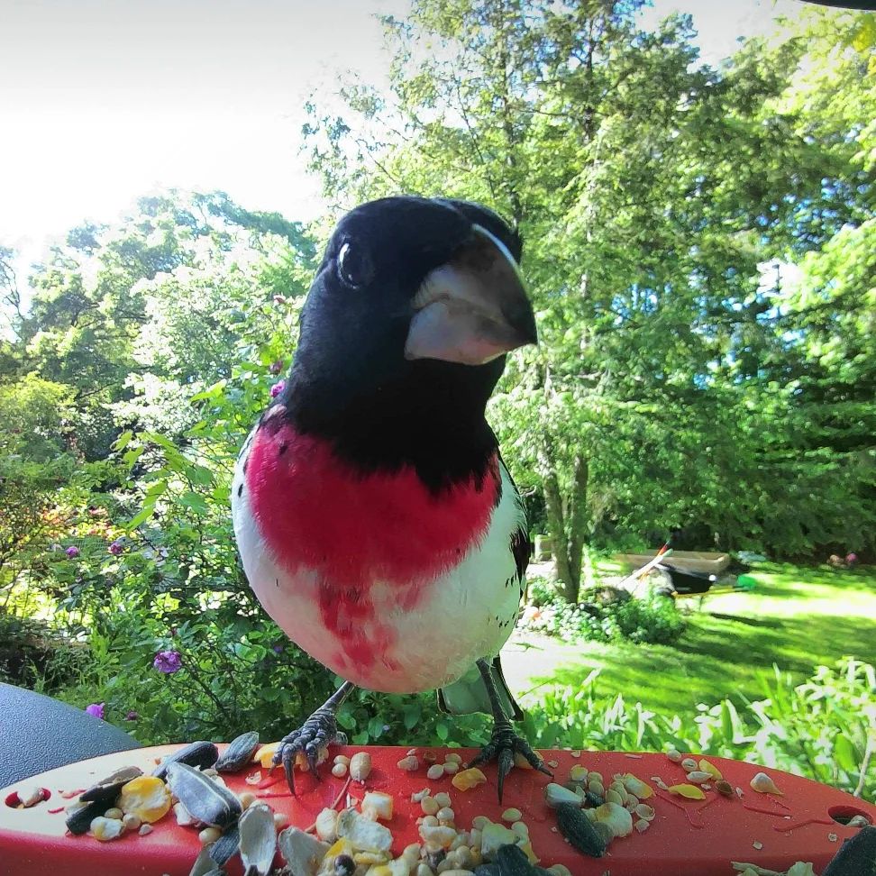 This morning, before heading out on my walk, the feeder was empty, so I filled it. When I returned an hour later, it was completely empty again. I knew there was no way a squirrel could ingest all that birdseed so quickly, so I pulled up the Bird Buddy app and found a new culprit.