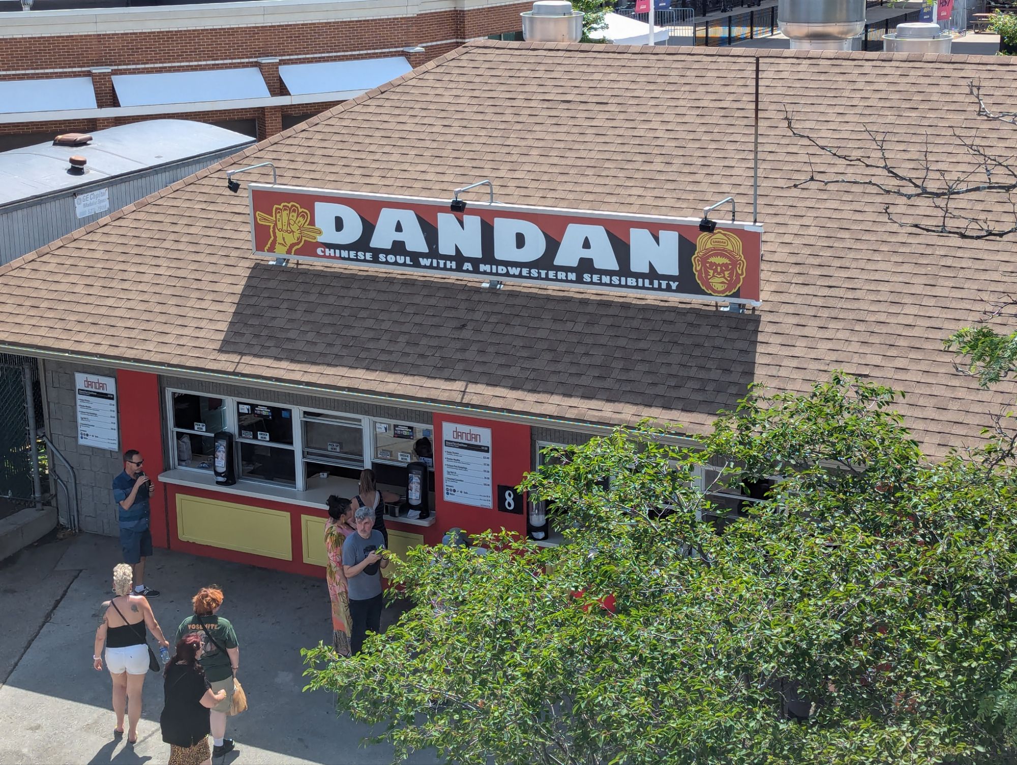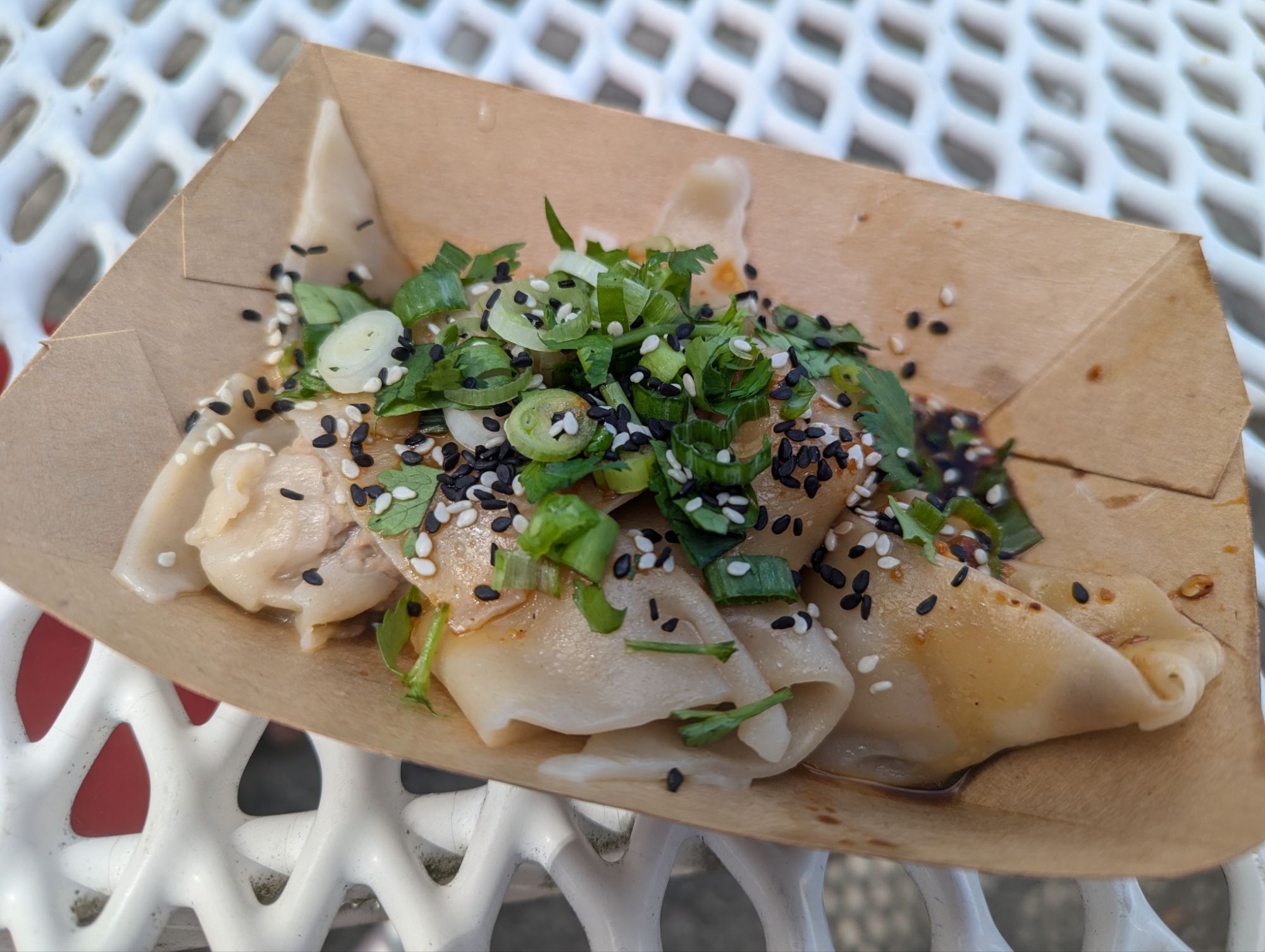 As we were gliding above the festival grounds, we spotted DanDan. Top Chef fans that we are, we were eager to try Milwaukee native and finalist Dan Jacobs’ cuisine, so we backtracked there for a quick bite to eat after disembarking. This obviously isn’t his actual restaurant so the menu was very limited, but the pork and chive dumplings were amazing, and the egg roll was one of the best we’ve ever had. If that’s what we can expect from the actual DanDan, I can’t wait to try a full meal.