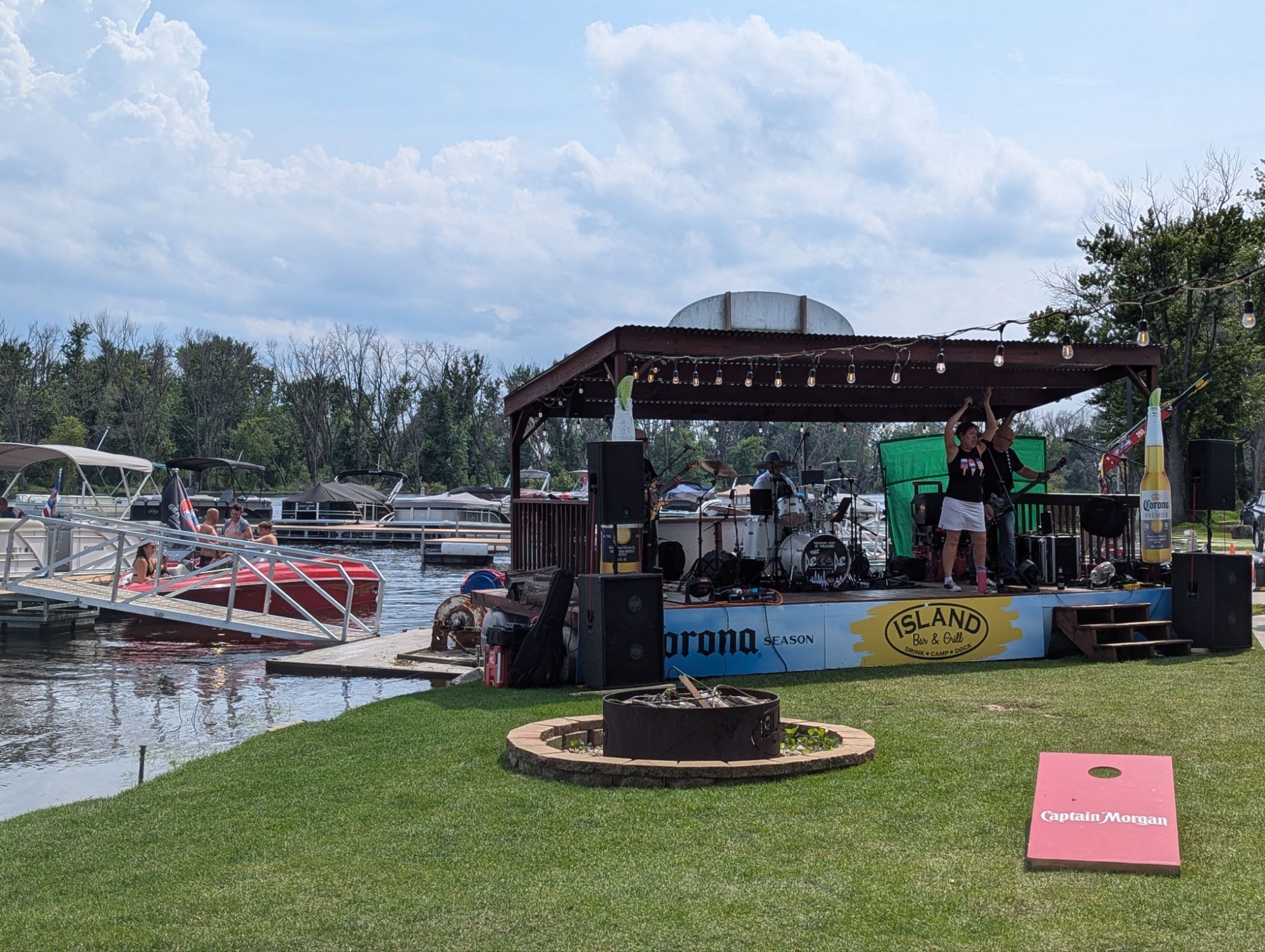 We balanced our kayak adventure by hanging out at Island Bar & Grill for a good four hours, heat and humidity be damned. I’ve mentioned this place a few times recently. It’s becoming our go-to; you can’t beat the location, right on the Rock River, or the patio and tiki bar. Though the experience is a little different in the middle of winter.